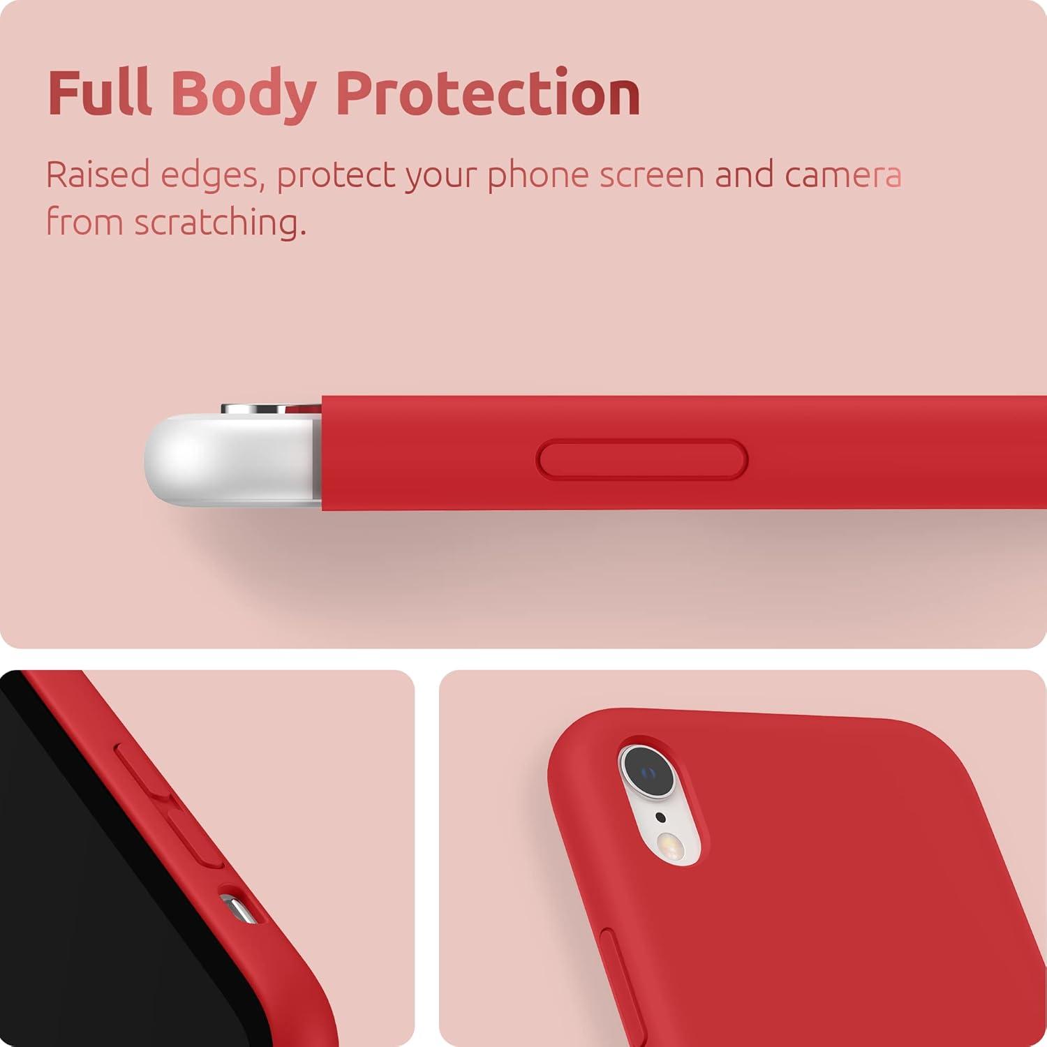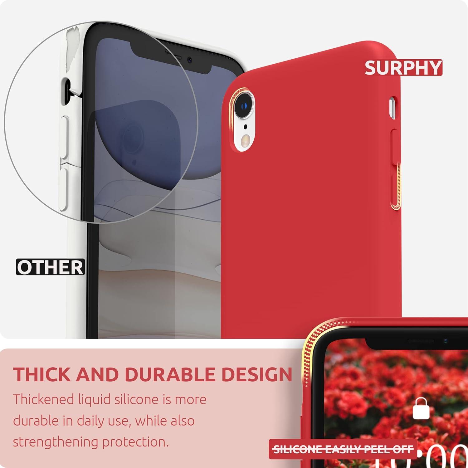 SURPHY Compatible with iPhone XR Case, Thickened Liquid Silicone Phone Case (with Microfiber Lining) for iPhone XR 6.1 inches, Red(Red (Full Body))