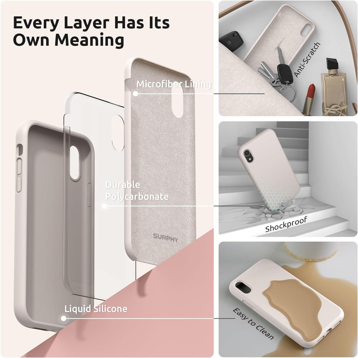 SURPHY Compatible with iPhone XR Case, Thickened Liquid Silicone Phone Case (with Microfiber Lining) for iPhone XR 6.1 inches, Red(Pink)