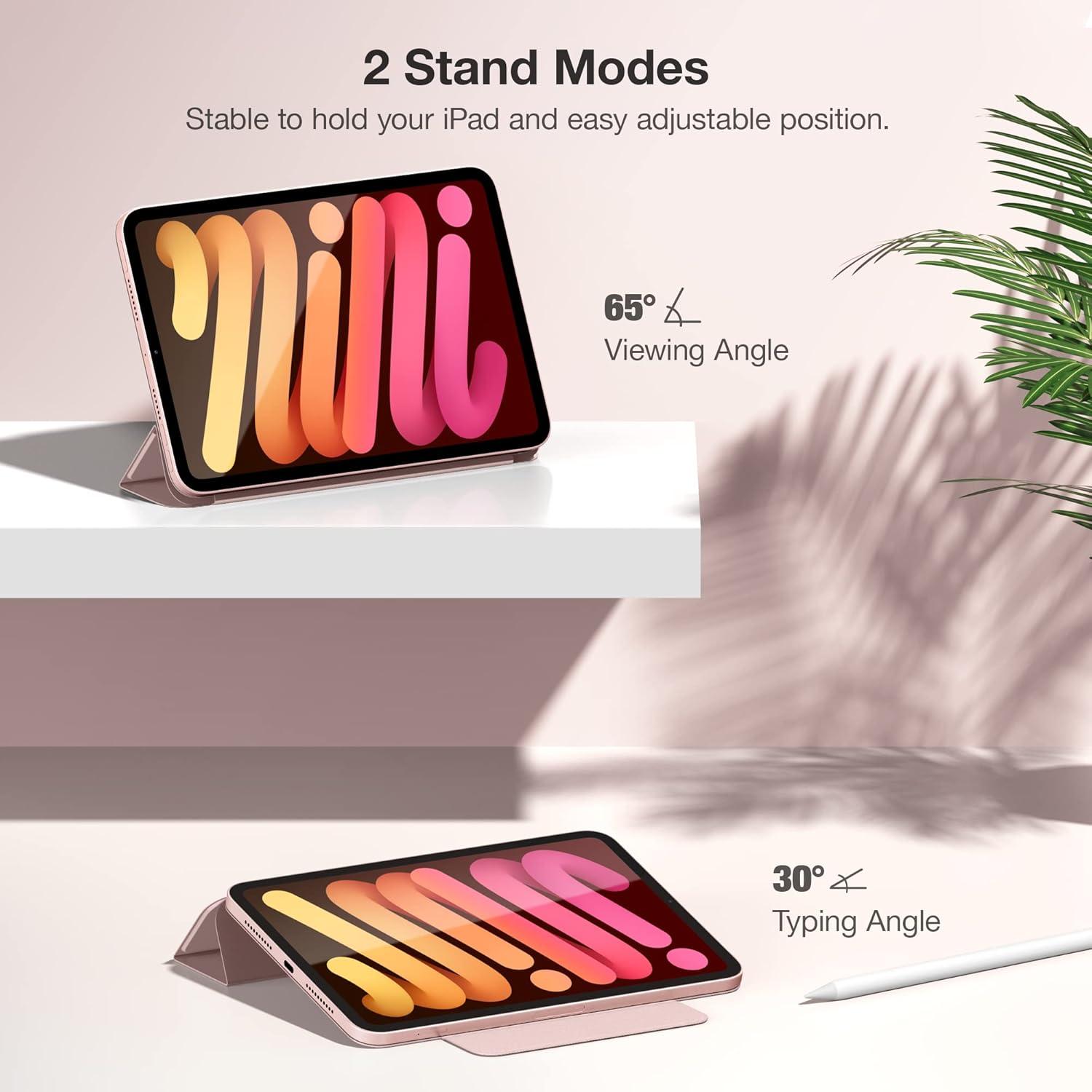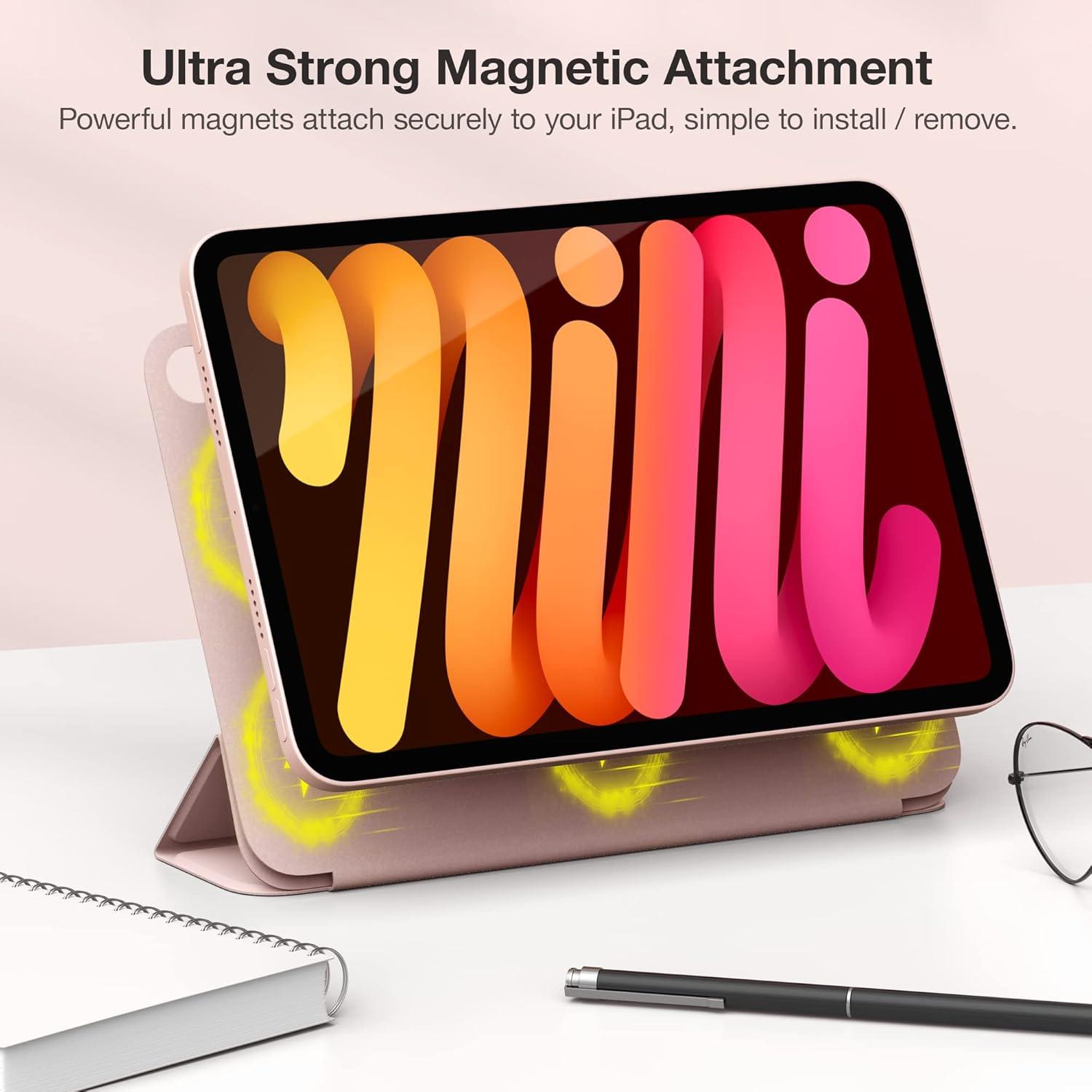 SURPHY Slim Magnetic Case for iPad mini 6 Case (8.3″ 2021), Strong Magnetic Smart Cover (with Microfiber Lining and Magnetic Flap) for iPad mini 6 6nd Generation (Pink)