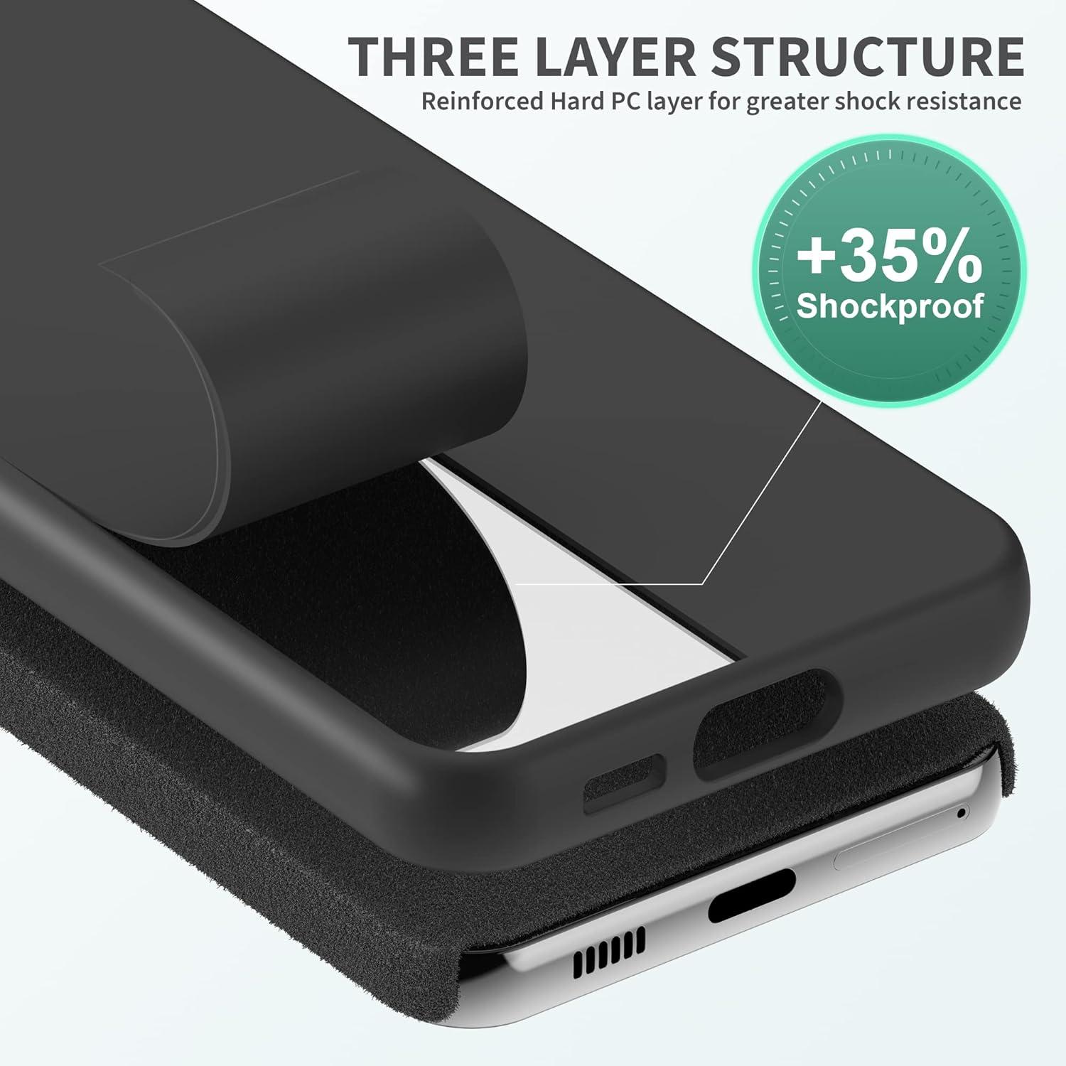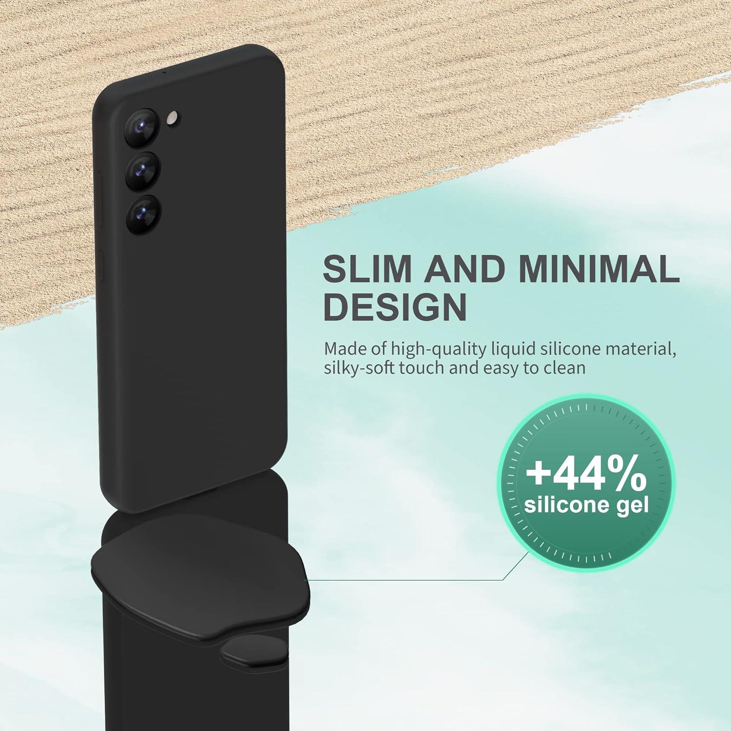 SURPHY Designed for Galaxy S23 Case with Screen Protector (6.1 inches), Camera Protection & Soft Microfiber Lining, Liquid Silicone Phone Case for S23 (2023 Released), Black
