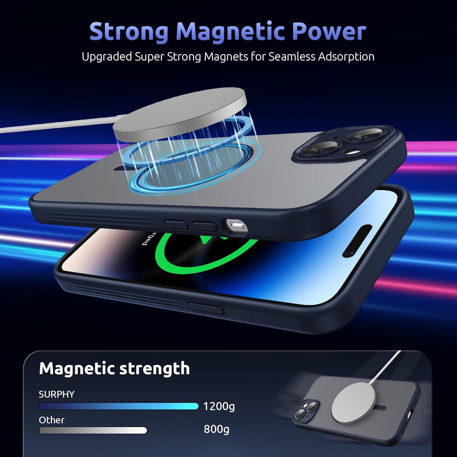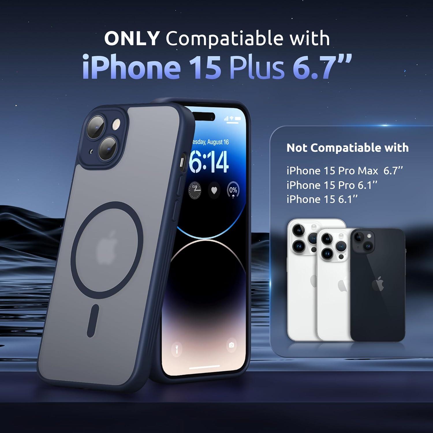 SURPHY Made for iPhone 15 Plus Case Compatible with MagSafe, and Screen Protector 2 Pack, Translucent Matte Phone Case with Camera Protective 6.7 inch 2023, Black(Blue)
