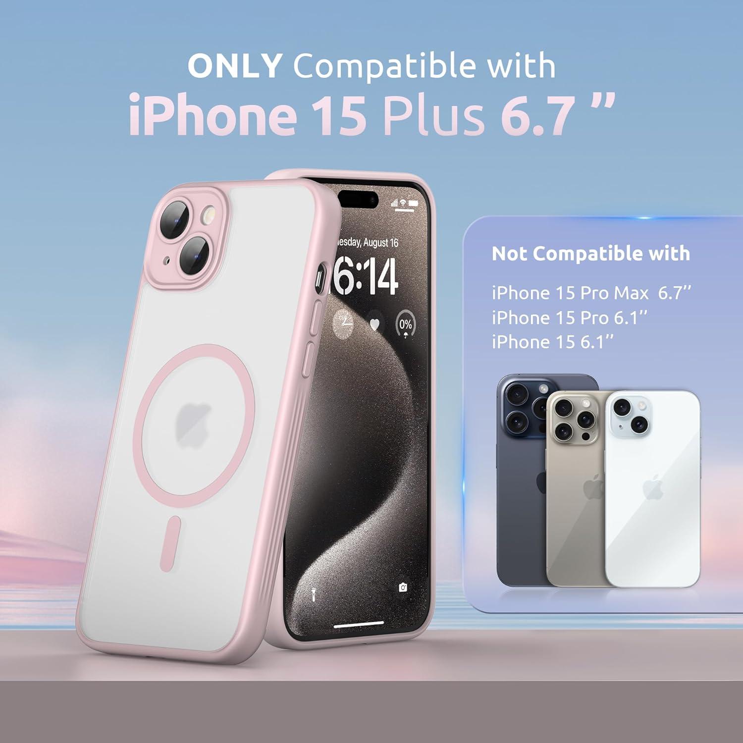 SURPHY Made for iPhone 15 Plus Case Compatible with MagSafe, and Screen Protector 2 Pack, Translucent Matte Phone Case with Camera Protective 6.7 inch 2023, Black(Pink)