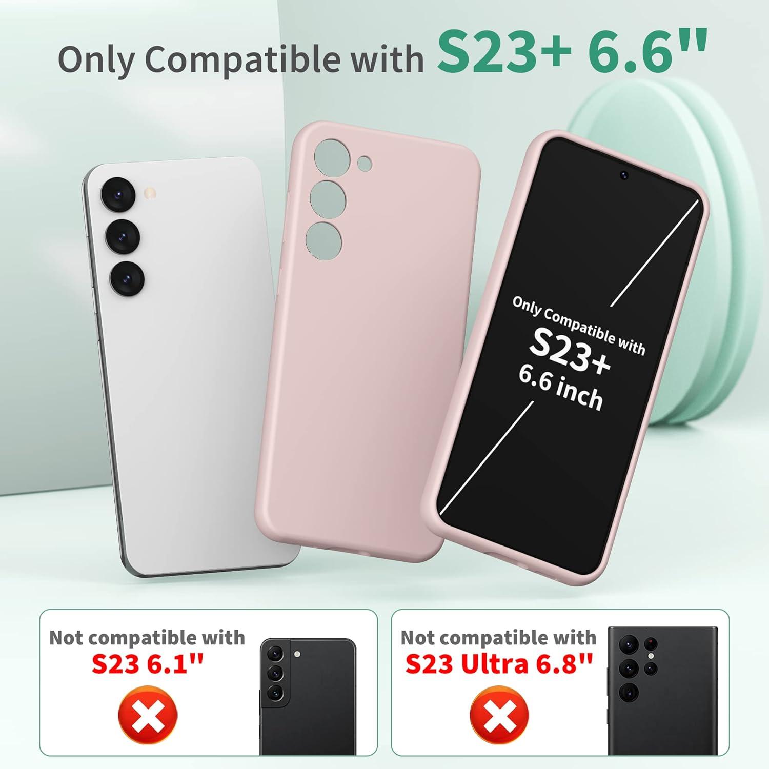 SURPHY Designed for iPhone 15 Plus Case with Screen Protector and Lanyard, Phone Strap and Liquid Silicone Phone Case (Camera Protective & Soft Microfiber Lining) 6.7 inch 2023, Black(Pink)