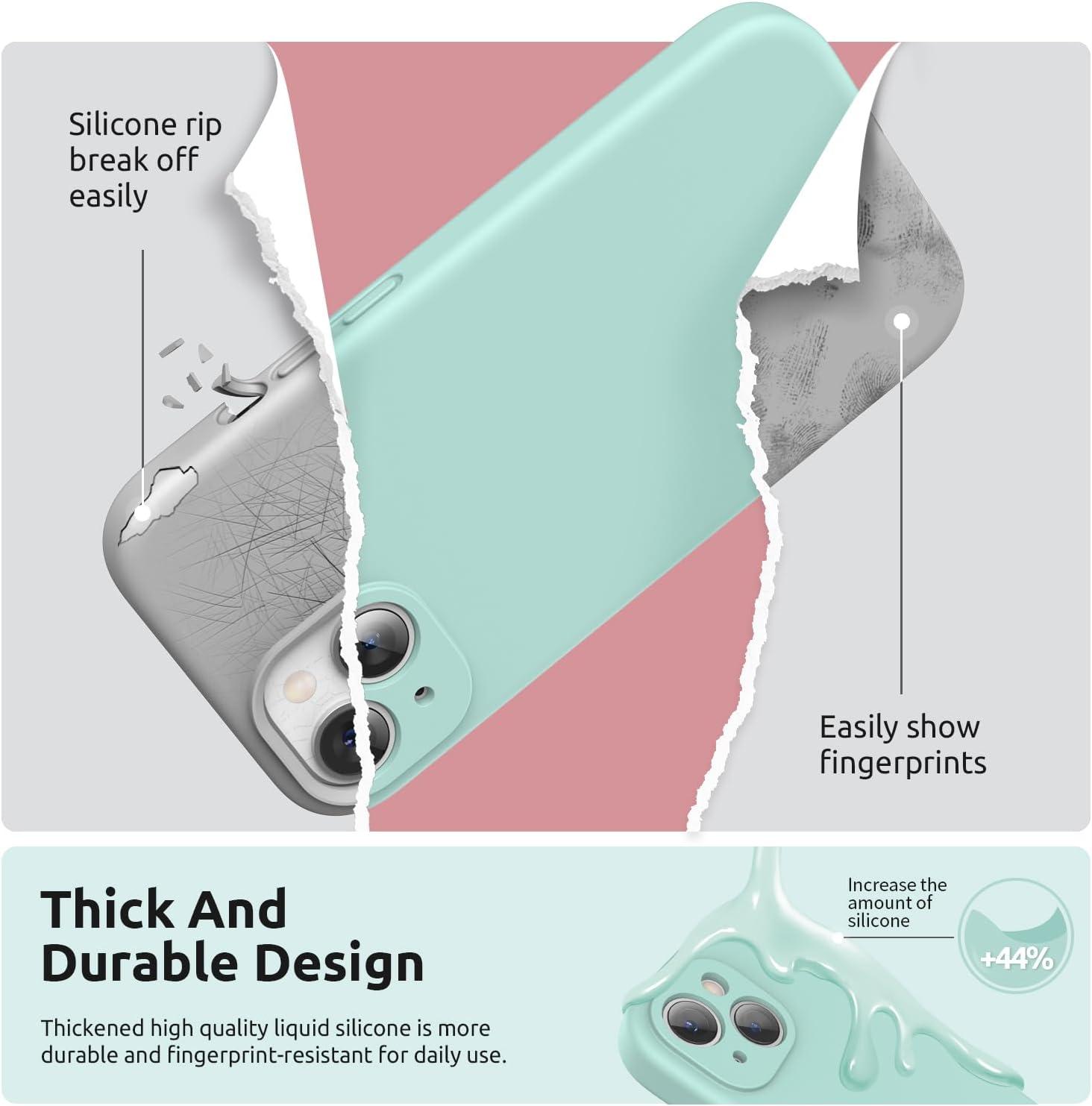 SURPHY Compatible with iPhone 13 Case with Screen Protector, (Camera Protection & Soft Microfiber Lining) Liquid Silicone Phone Case 6.1 inch 2021, Cactus Green(Mint Green)