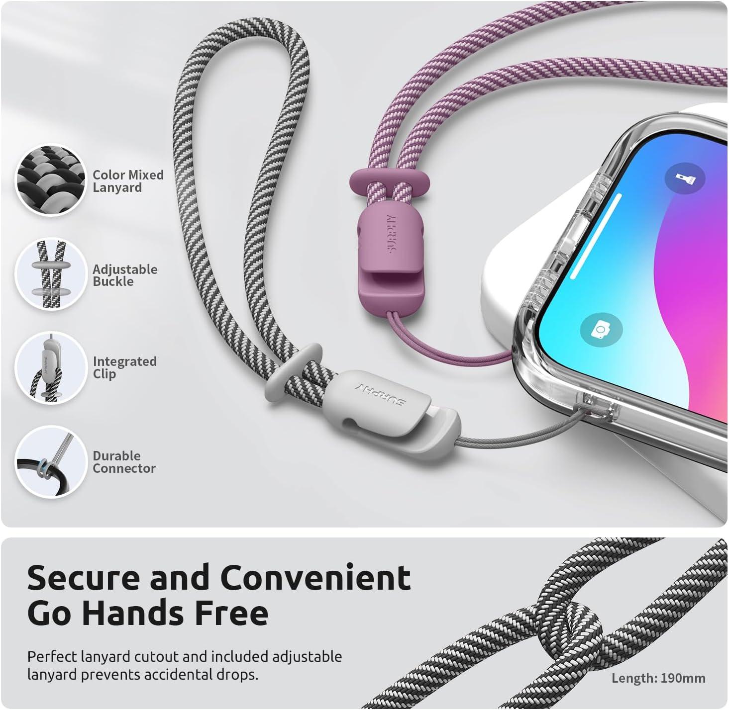 SURPHY Designed for iPhone 15 Pro Case with Screen Protector and Lanyard, Phone Strap and Liquid Silicone Phone Case (Camera Protective & Soft Microfiber Lining) 6.1 inch 2023, Lilac Purple(Stone)