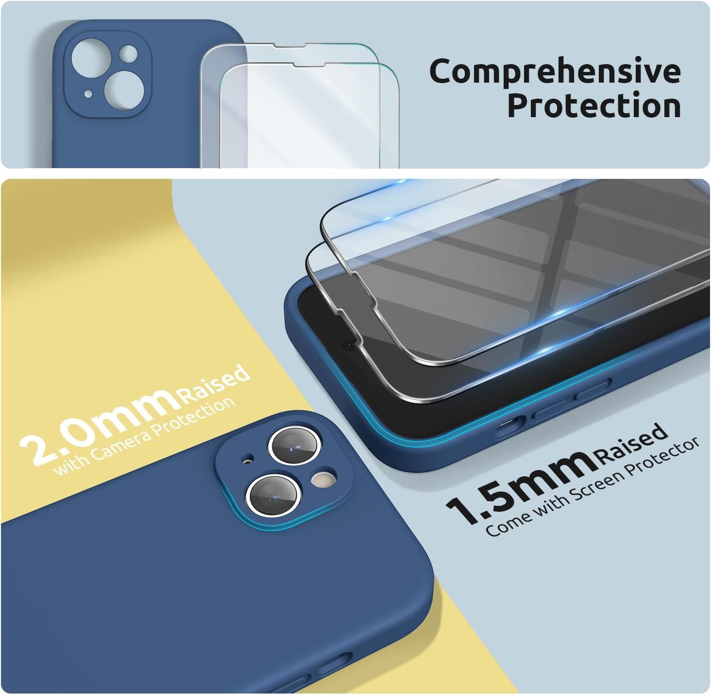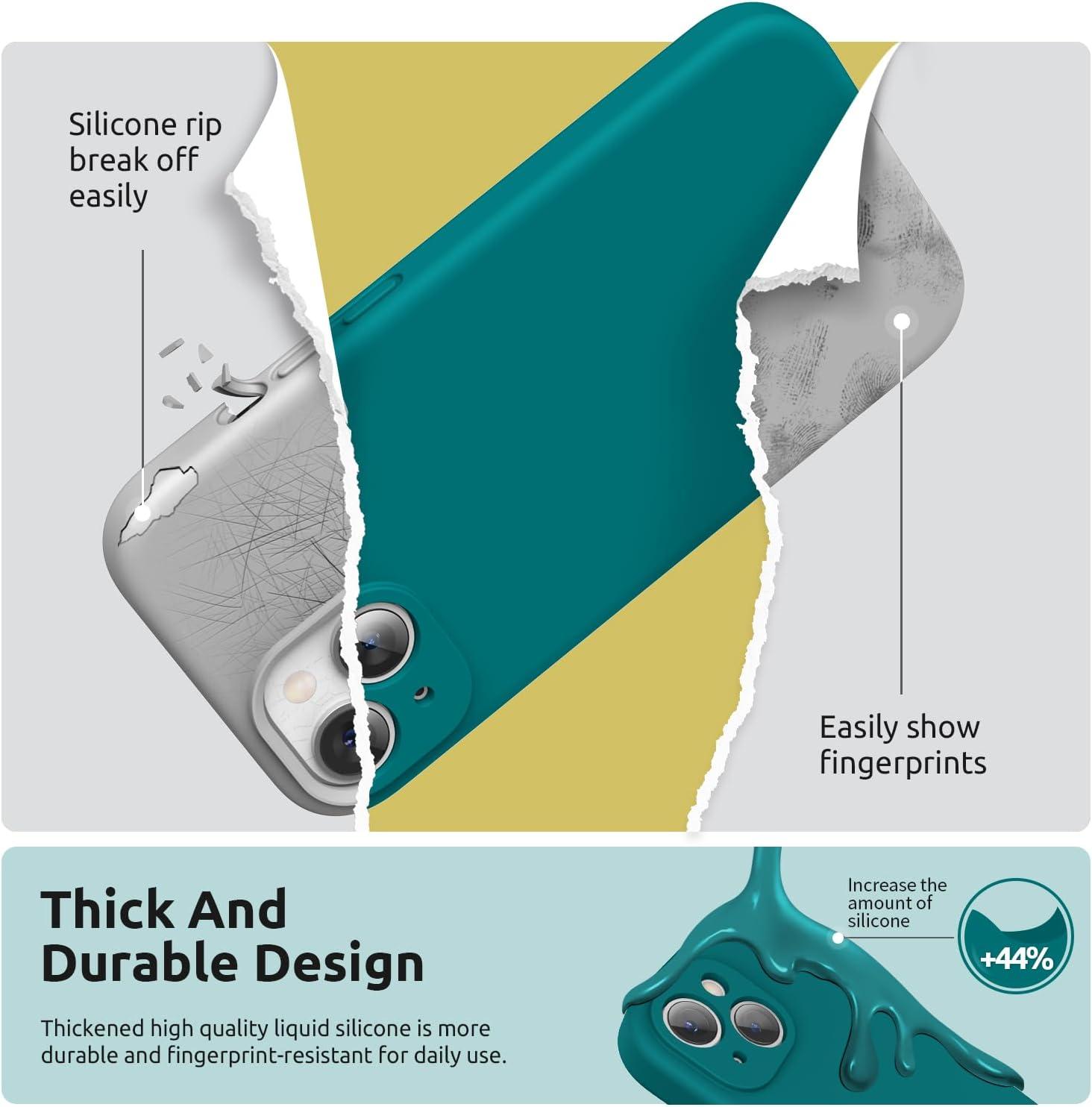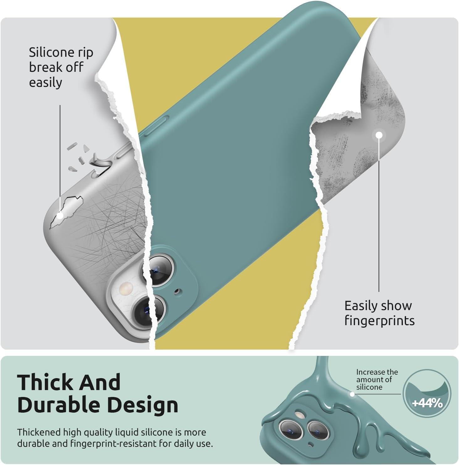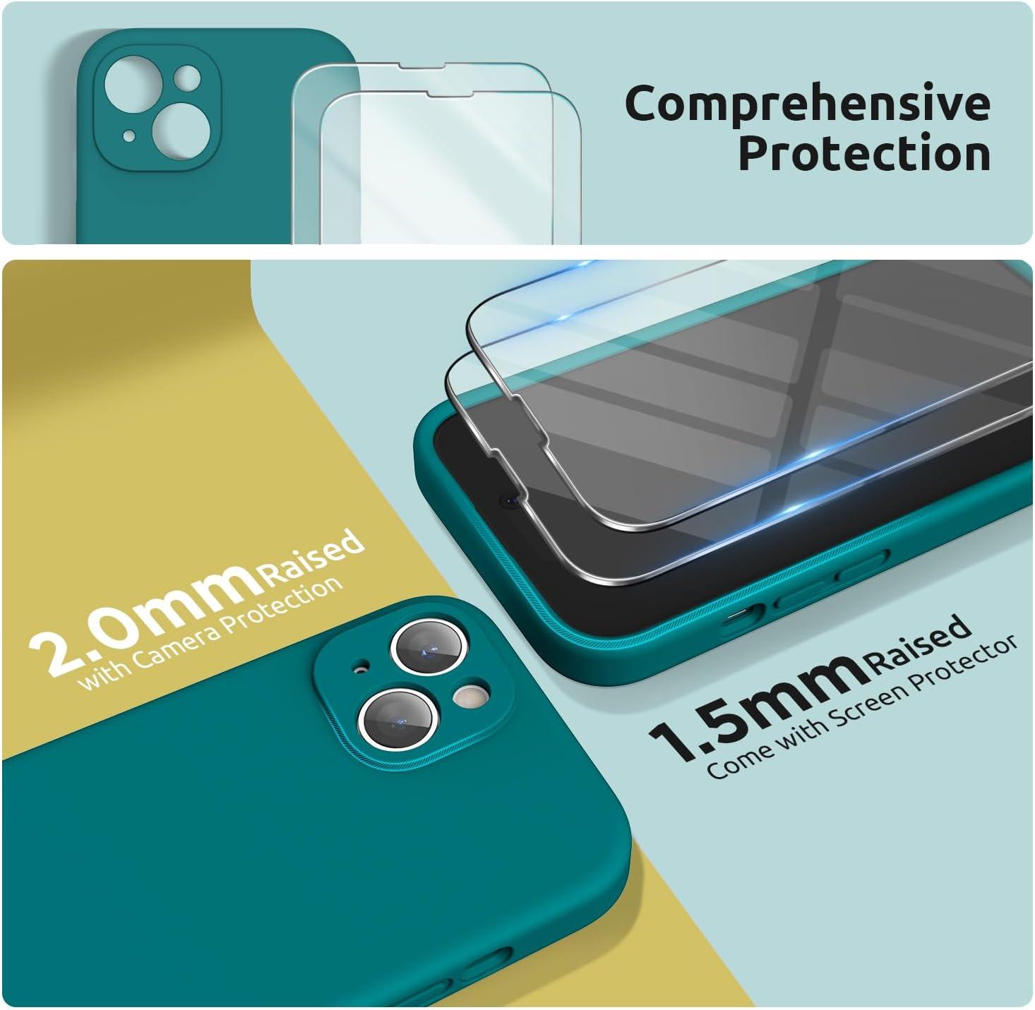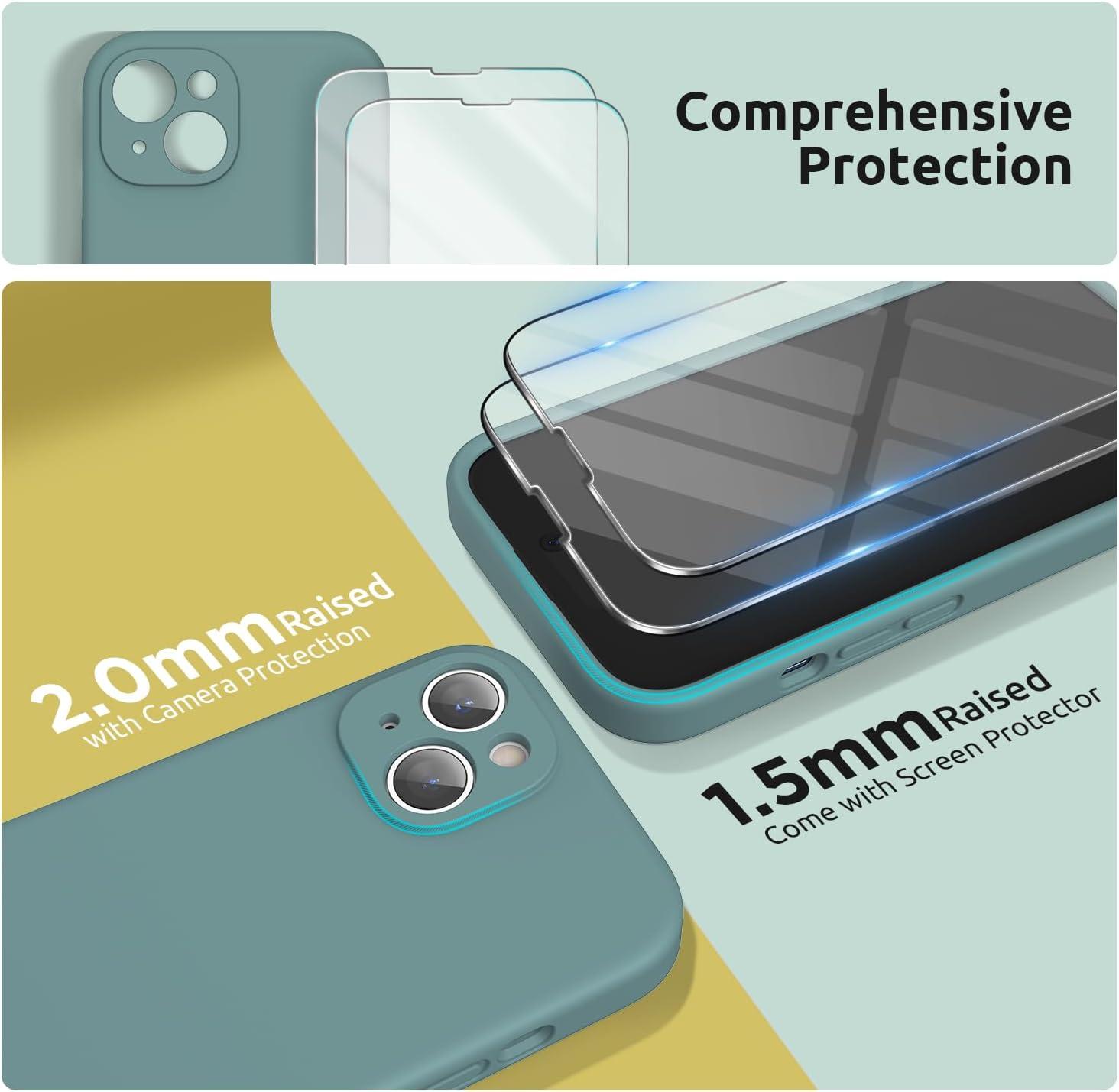 SURPHY Compatible with iPhone 13 Case with Screen Protector, (Camera Protection & Soft Microfiber Lining) Liquid Silicone Phone Case 6.1 inch 2021, Cactus Green(Midnight Blue)