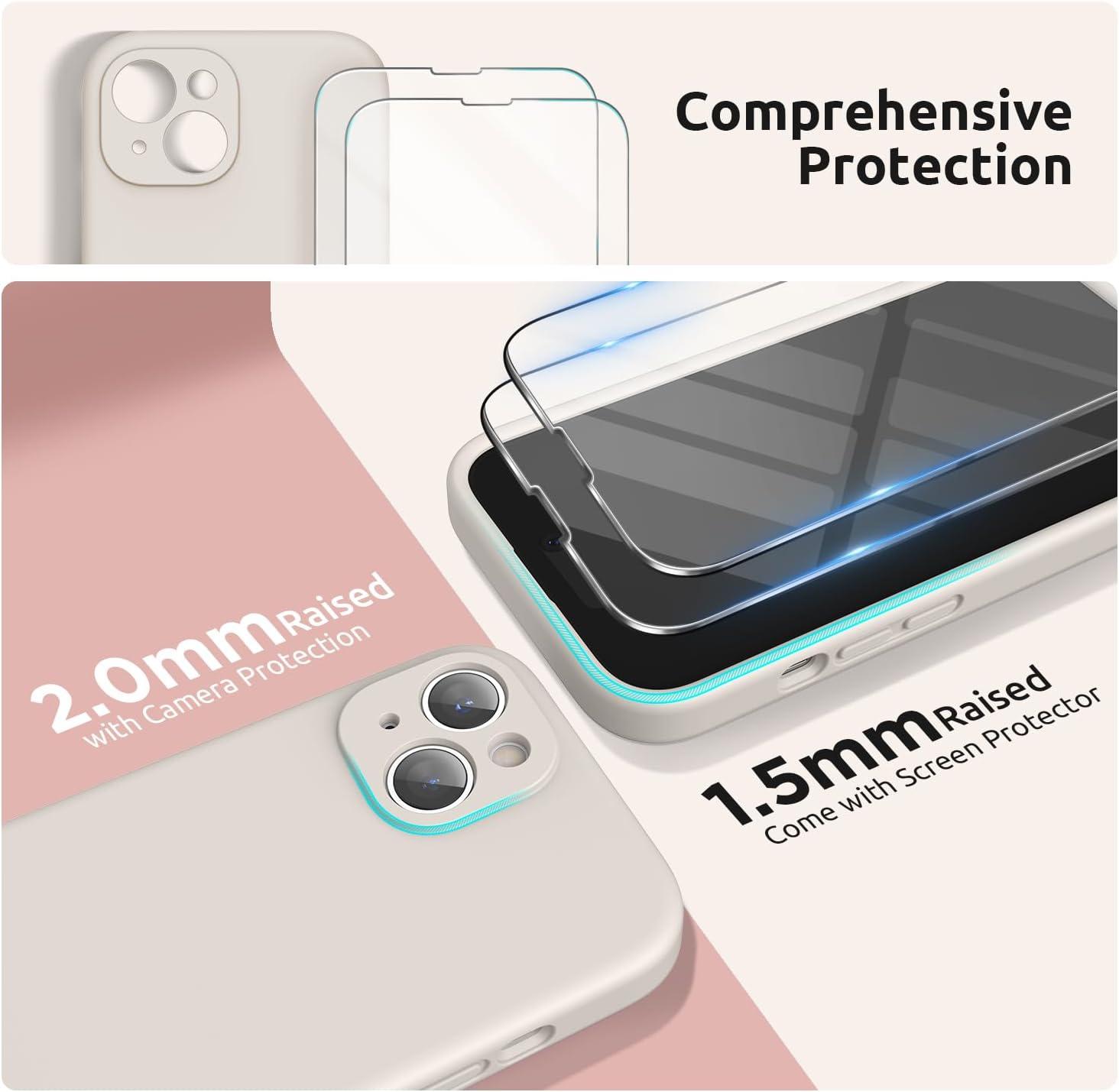 SURPHY Case for iPhone 13 Pro Case with Screen Protector, 13 Pro Liquid Silicone Phone Cases (Camera Protection & Soft Microfiber Lining), Pink Sand(White)