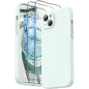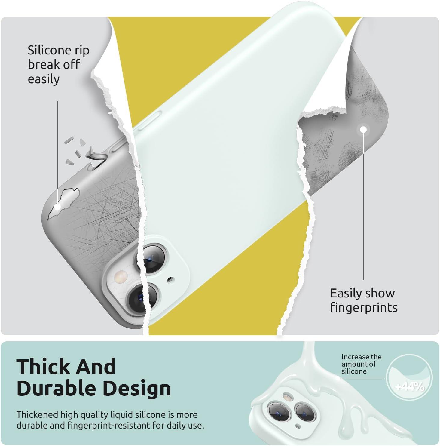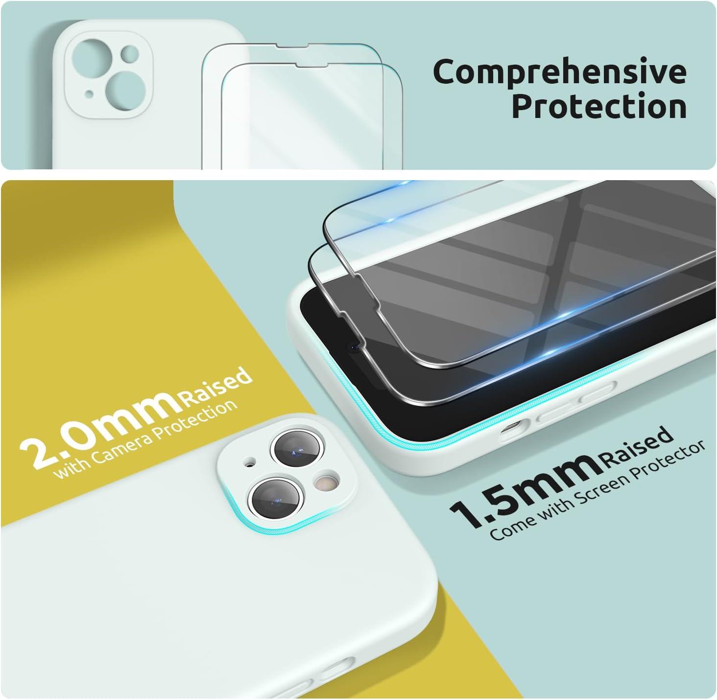 SURPHY Compatible with iPhone 13 Case with Screen Protector, (Camera Protection & Soft Microfiber Lining) Liquid Silicone Phone Case 6.1 inch 2021, Cactus Green(Soft Mint)