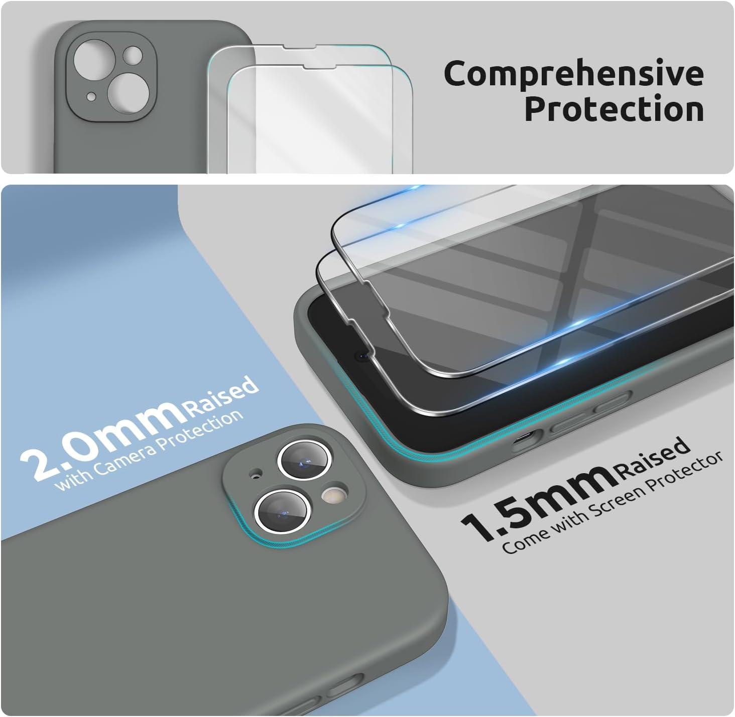 SURPHY Compatible with iPhone 13 Case with Screen Protector, (Camera Protection & Soft Microfiber Lining) Liquid Silicone Phone Case 6.1 inch 2021, Cactus Green(Lavender Gray)