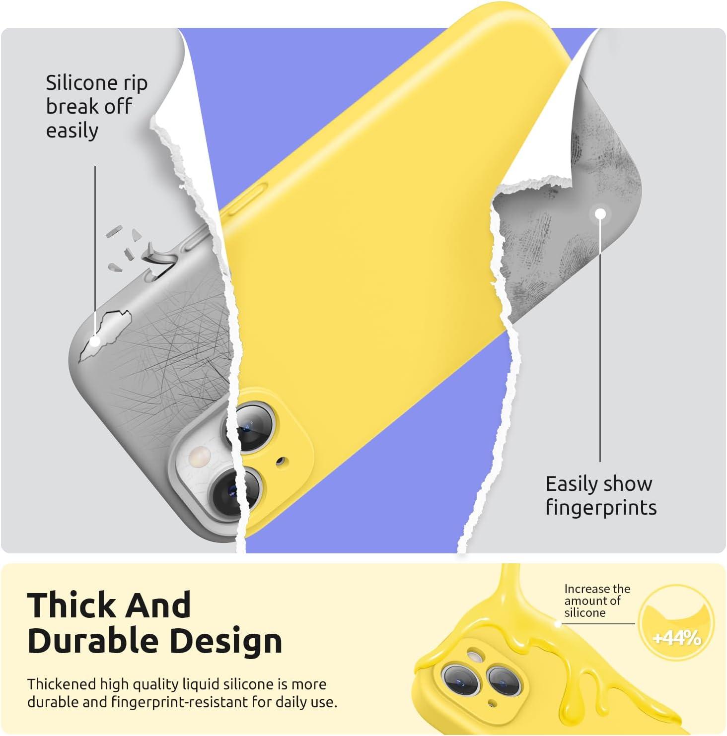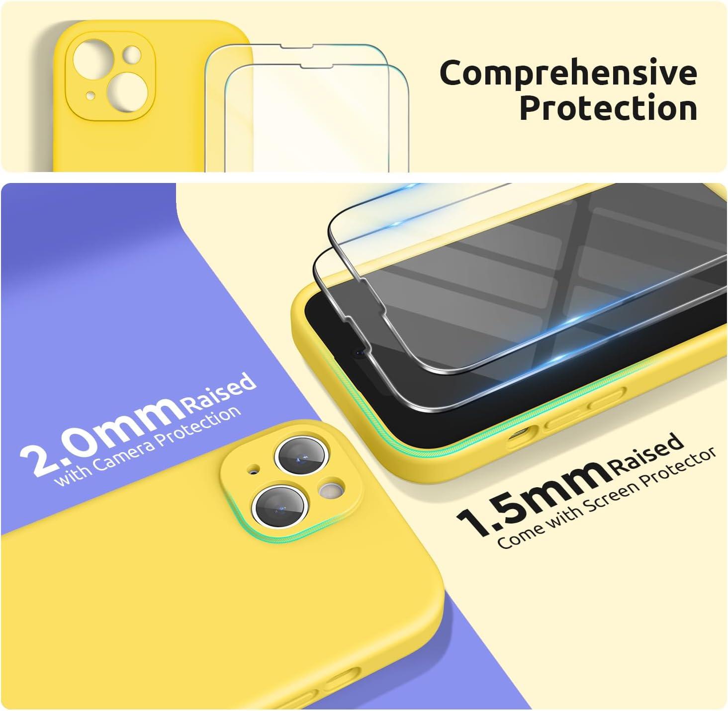 SURPHY Case for iPhone 13 Pro Case with Screen Protector, 13 Pro Liquid Silicone Phone Cases (Camera Protection & Soft Microfiber Lining), Black(Yellow)