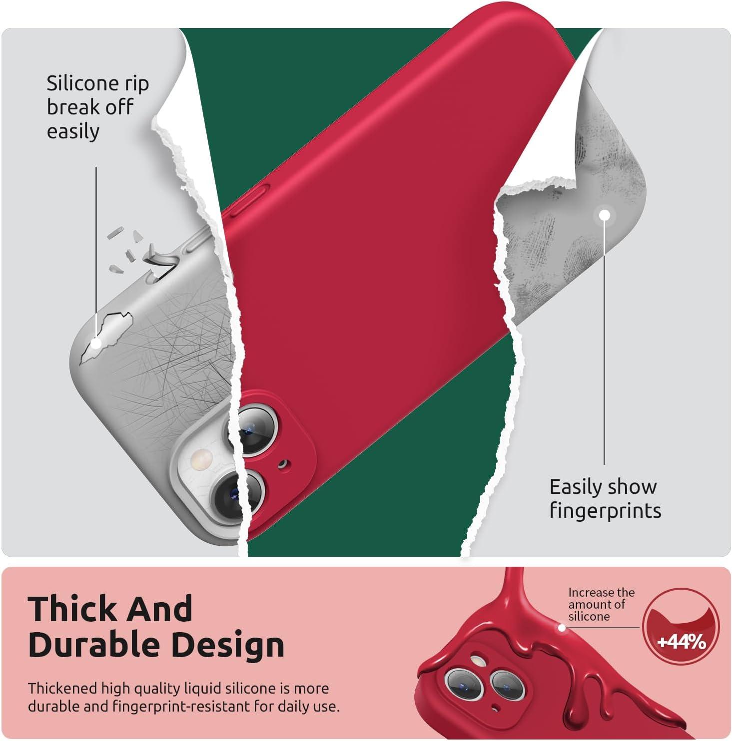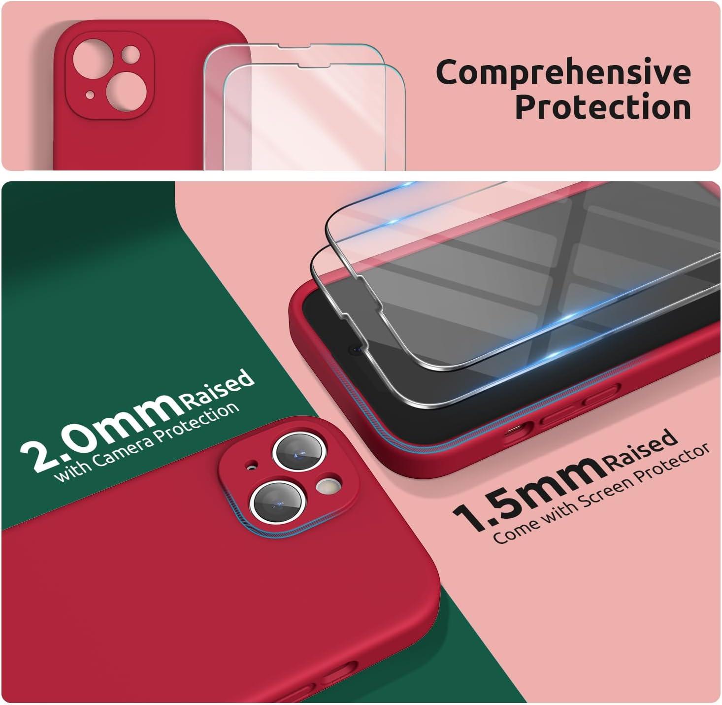 SURPHY Compatible with iPhone 13 Case with Screen Protector, (Camera Protection & Soft Microfiber Lining) Liquid Silicone Phone Case 6.1 inch 2021, Cactus Green(Red)