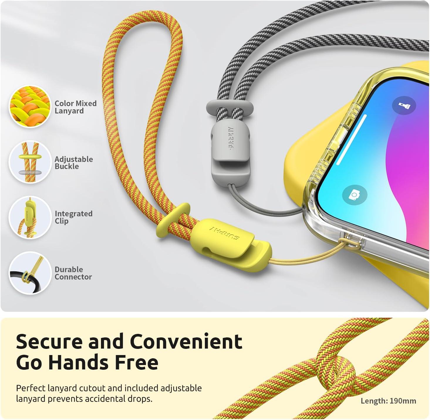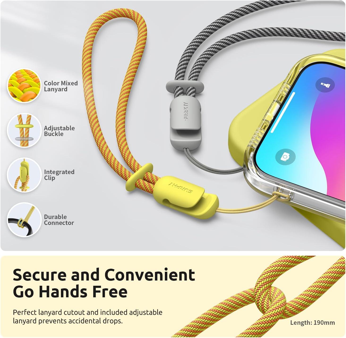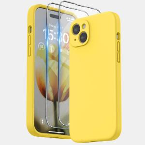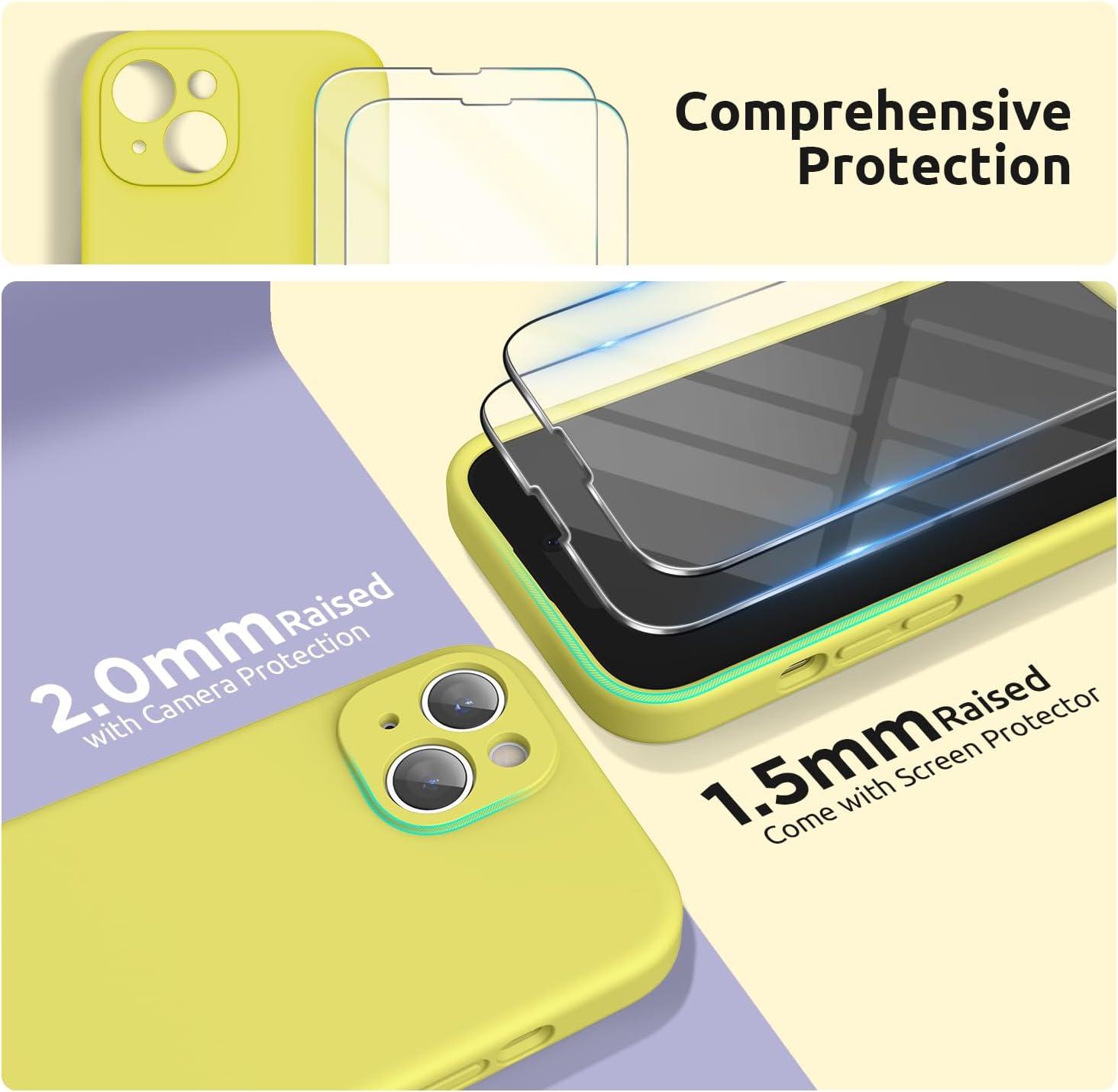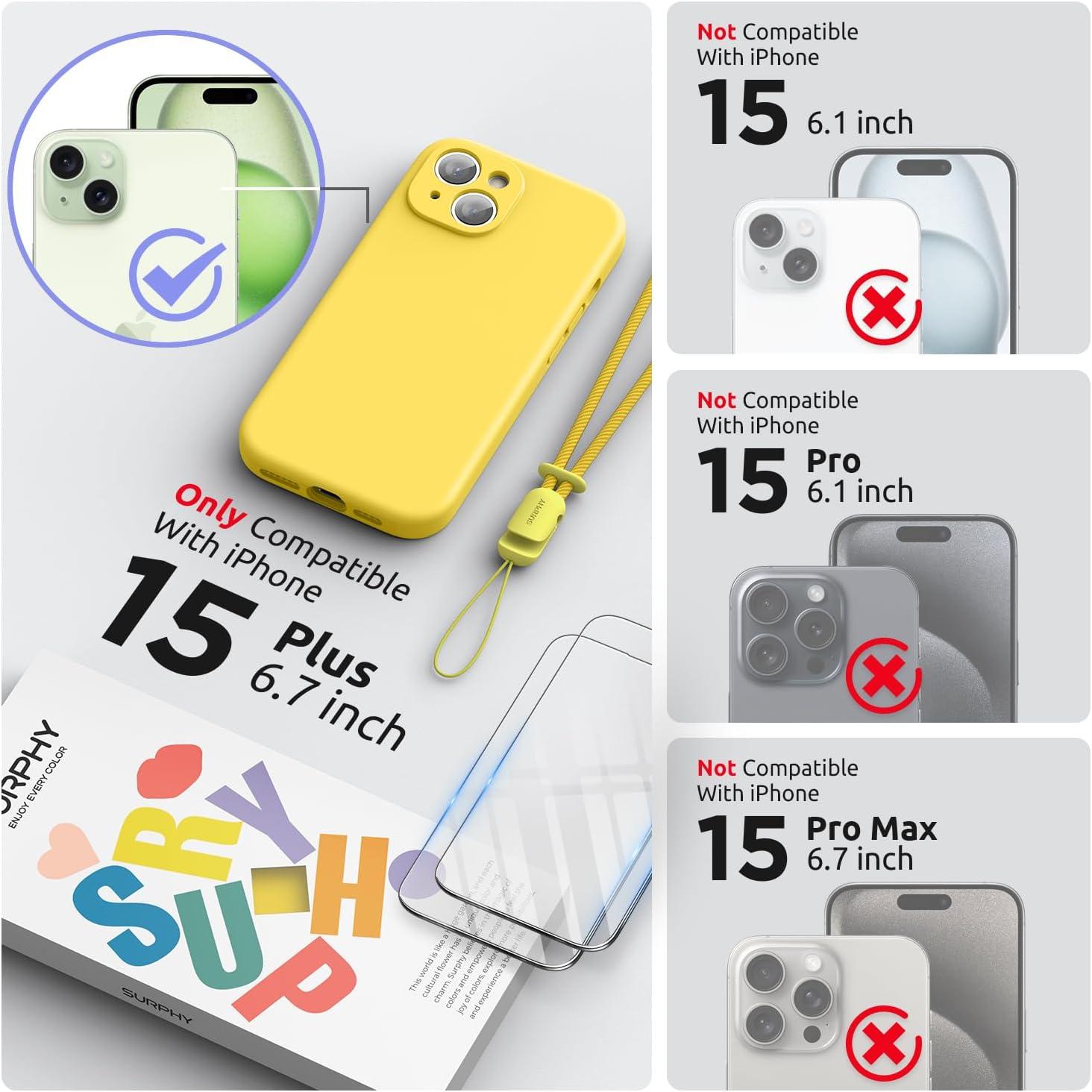 SURPHY Designed for iPhone 15 Plus Case with Screen Protector and Lanyard, Phone Strap and Liquid Silicone Phone Case (Camera Protective & Soft Microfiber Lining) 6.7 inch 2023, Black(Canary Yellow)