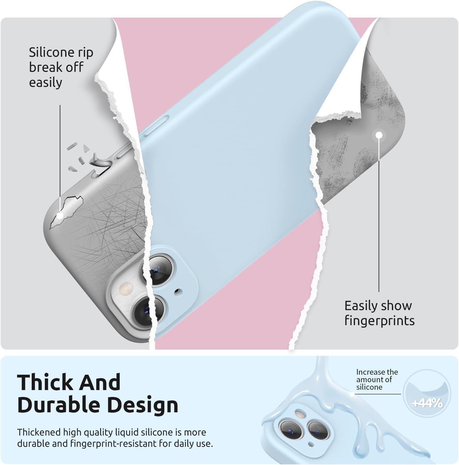 SURPHY Compatible with iPhone 13 Case with Screen Protector, (Camera Protection & Soft Microfiber Lining) Liquid Silicone Phone Case 6.1 inch 2021, Cactus Green(Cloud Blue)