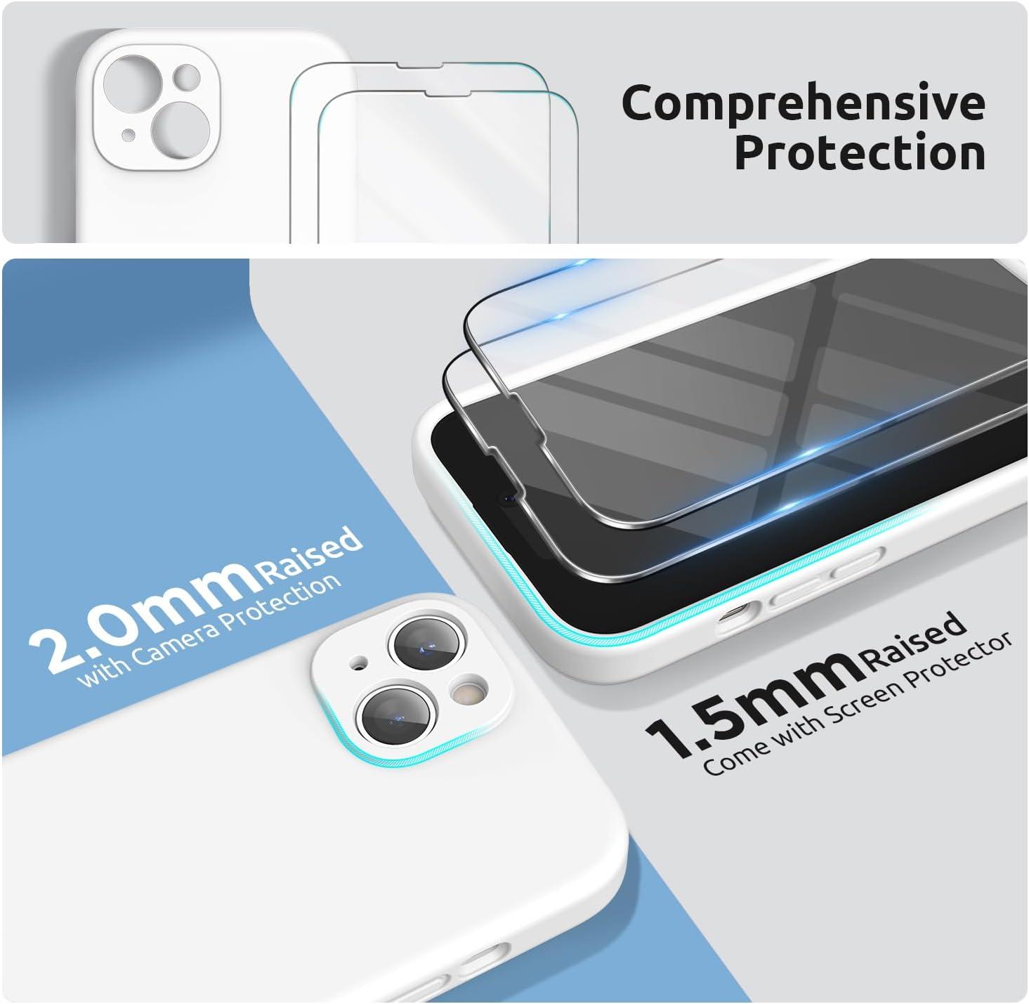 SURPHY Case for iPhone 13 Pro Case with Screen Protector, 13 Pro Liquid Silicone Phone Cases (Camera Protection & Soft Microfiber Lining), Black(White)