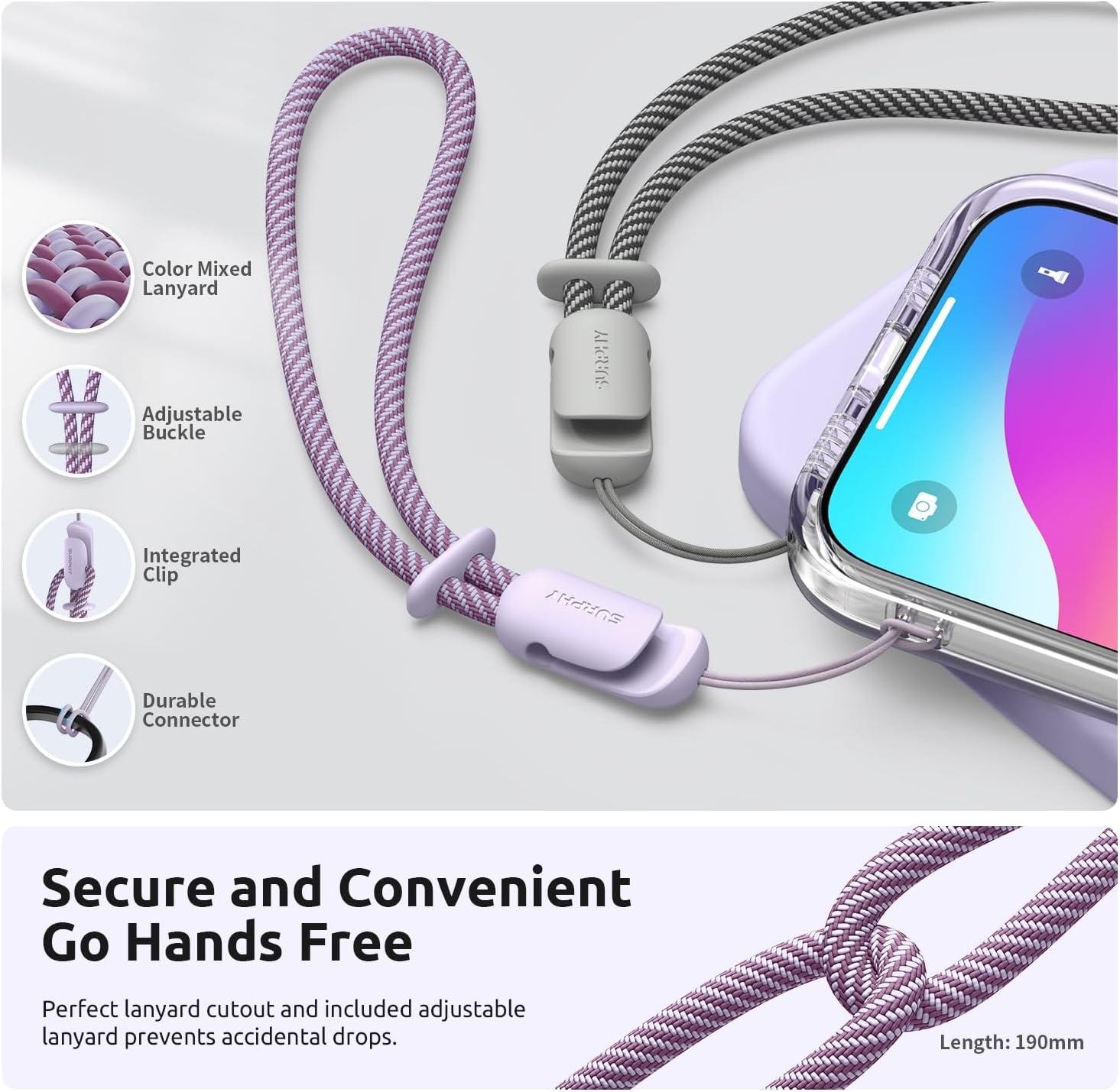 SURPHY Designed for iPhone 15 Case with Screen Protector and Lanyard, Phone Strap and Liquid Silicone Phone Case (Camera Protective & Soft Microfiber Lining) 6.1 inch 2023, Lilac Purple(White)