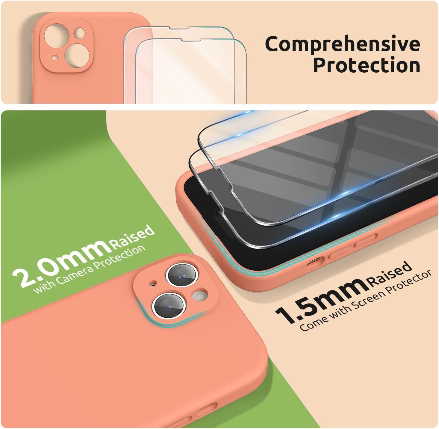SURPHY Compatible with iPhone 13 Case with Screen Protector, (Camera Protection & Soft Microfiber Lining) Liquid Silicone Phone Case 6.1 inch 2021, Cactus Green(Marigold Orange)