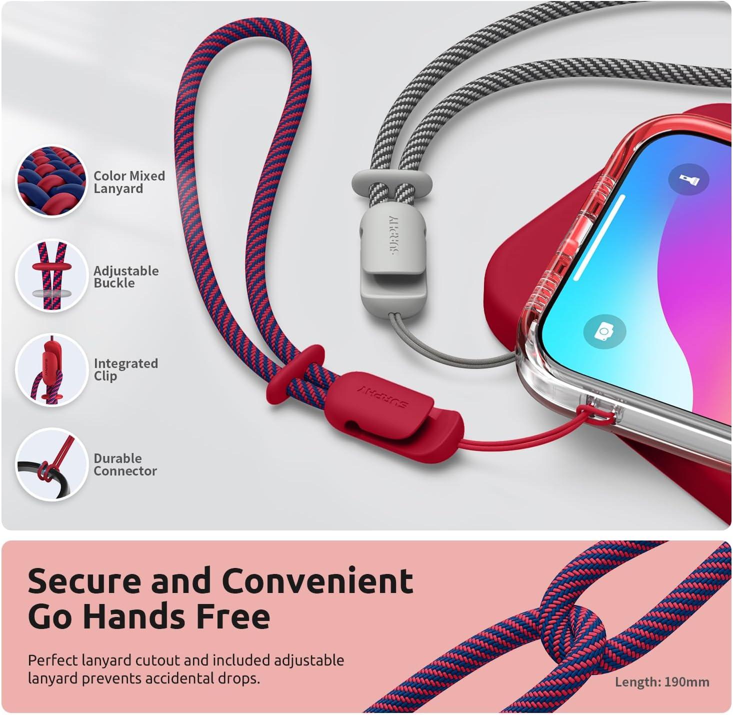 SURPHY Designed for iPhone 15 Plus Case with Screen Protector and Lanyard, Phone Strap and Liquid Silicone Phone Case (Camera Protective & Soft Microfiber Lining) 6.7 inch 2023, Black(Red)