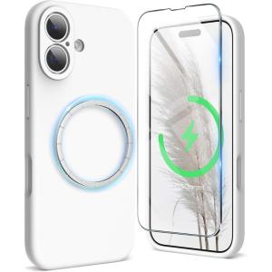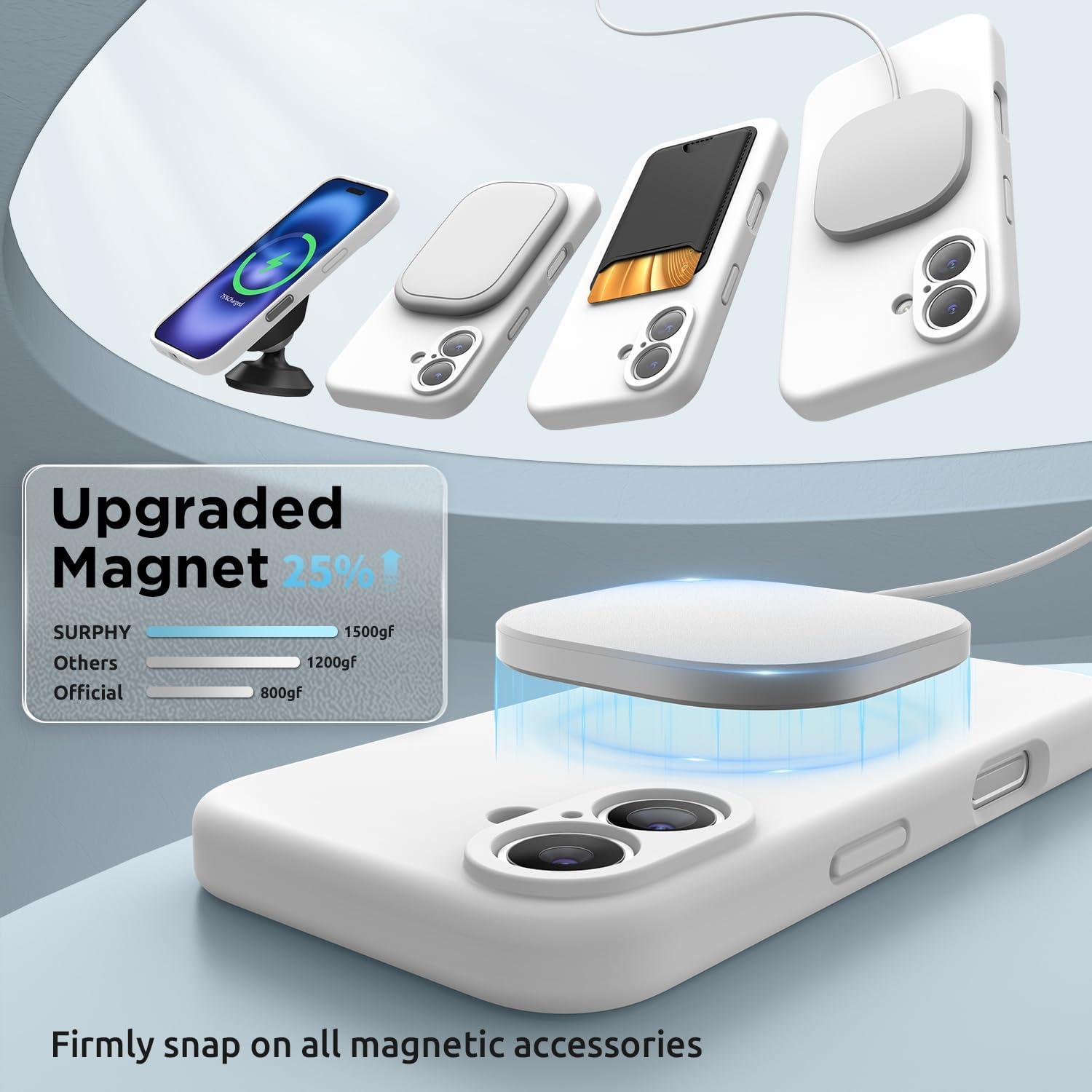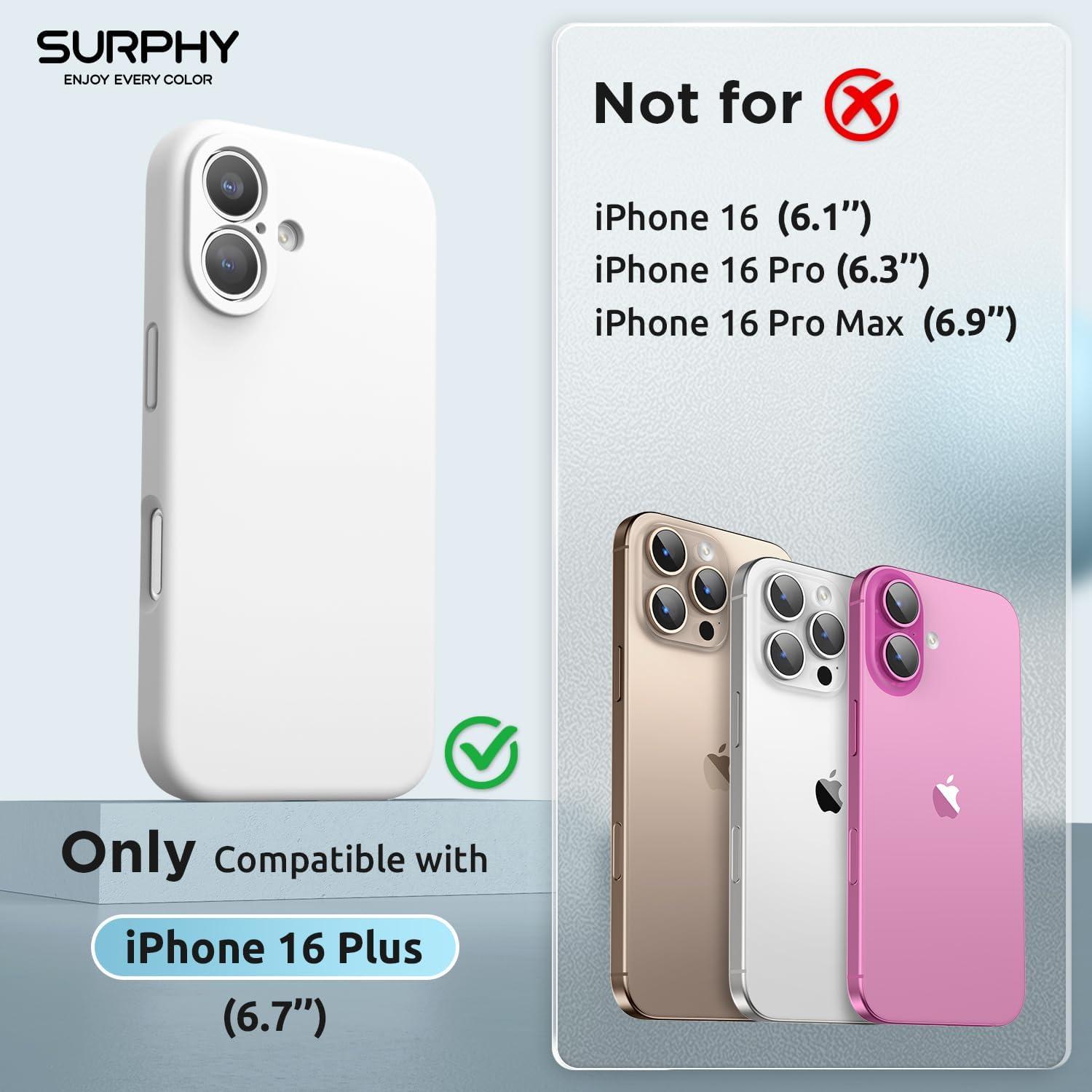 SURPHY Designed for iPhone 16 Plus Case Compatible with MagSafe (6.7 inch 2024), with Screen Protector Liquid Silicone Phone Case (Camera Protective, Soft Microfiber Lining), Soft Mint(White)