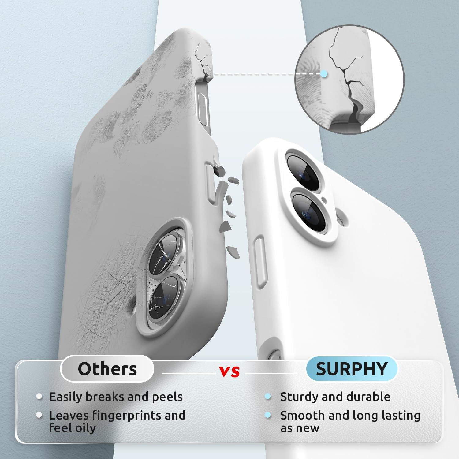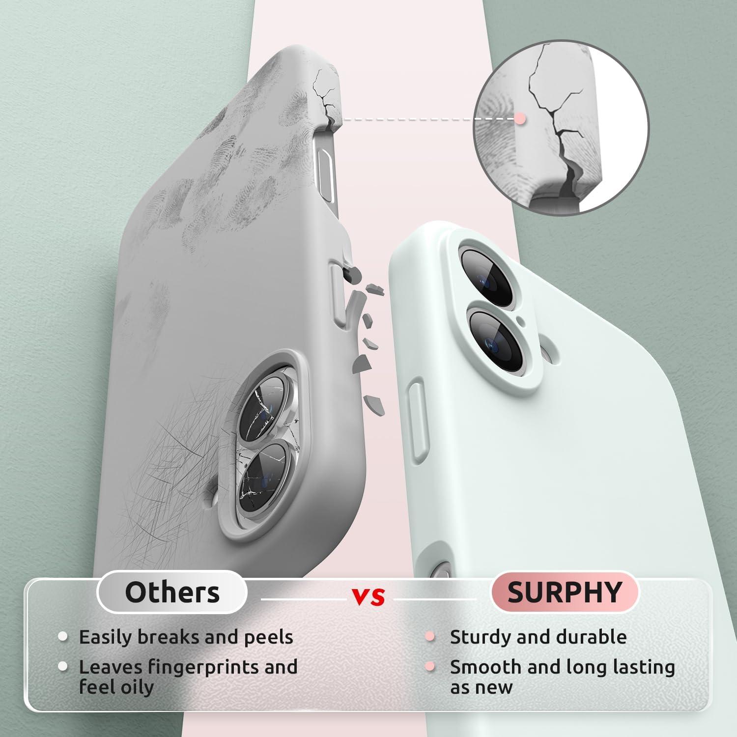 SURPHY Designed for iPhone 16 Plus Case Compatible with MagSafe (6.7 inch 2024), with Screen Protector Liquid Silicone Phone Case (Camera Protective, Soft Microfiber Lining), Soft Mint(Lavender Gray)
