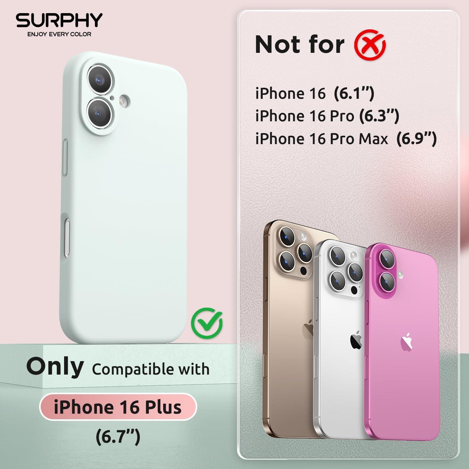 SURPHY Designed for iPhone 16 Plus Case Compatible with MagSafe (6.7 inch 2024), with Screen Protector Liquid Silicone Phone Case (Camera Protective, Soft Microfiber Lining), Soft Mint(Soft Mint)