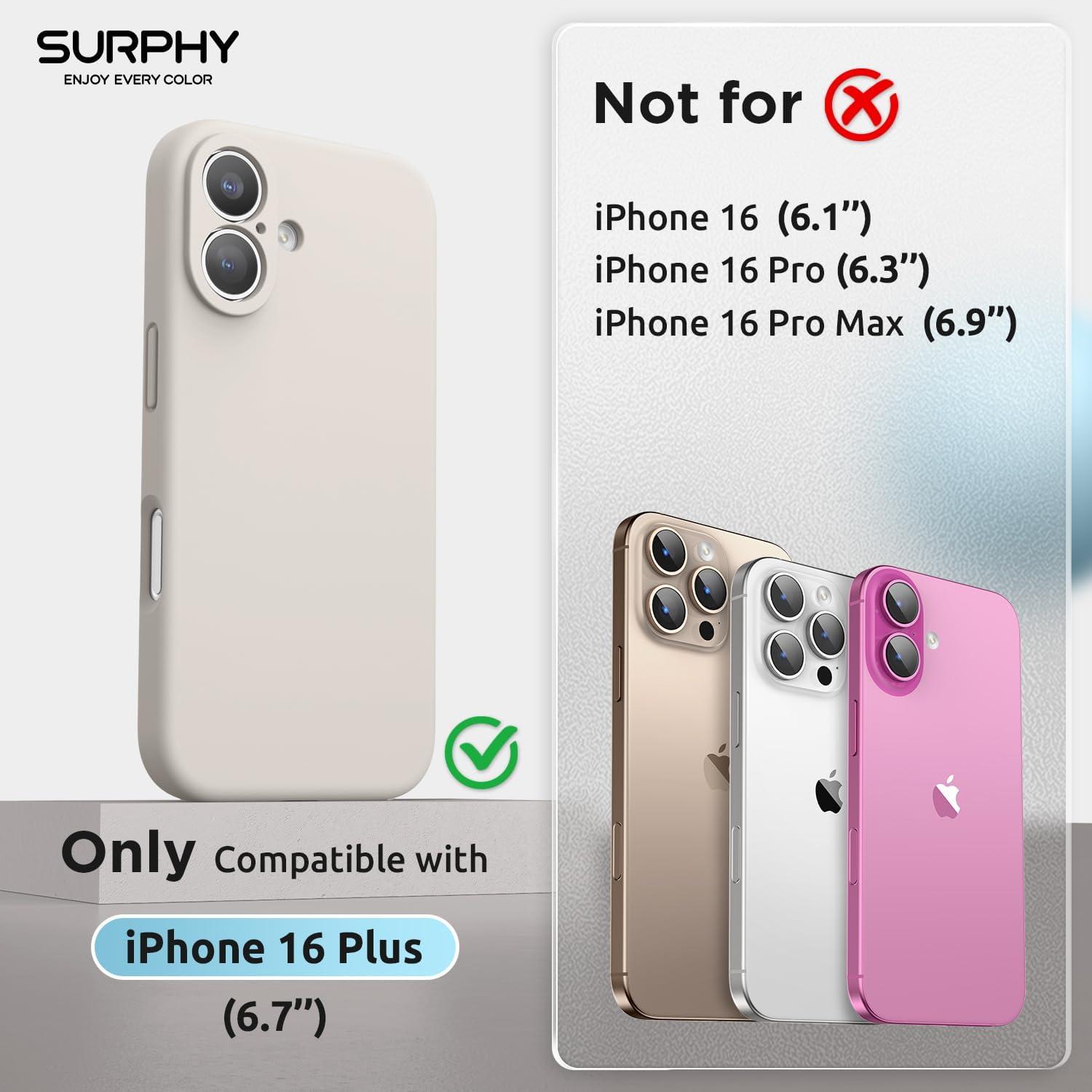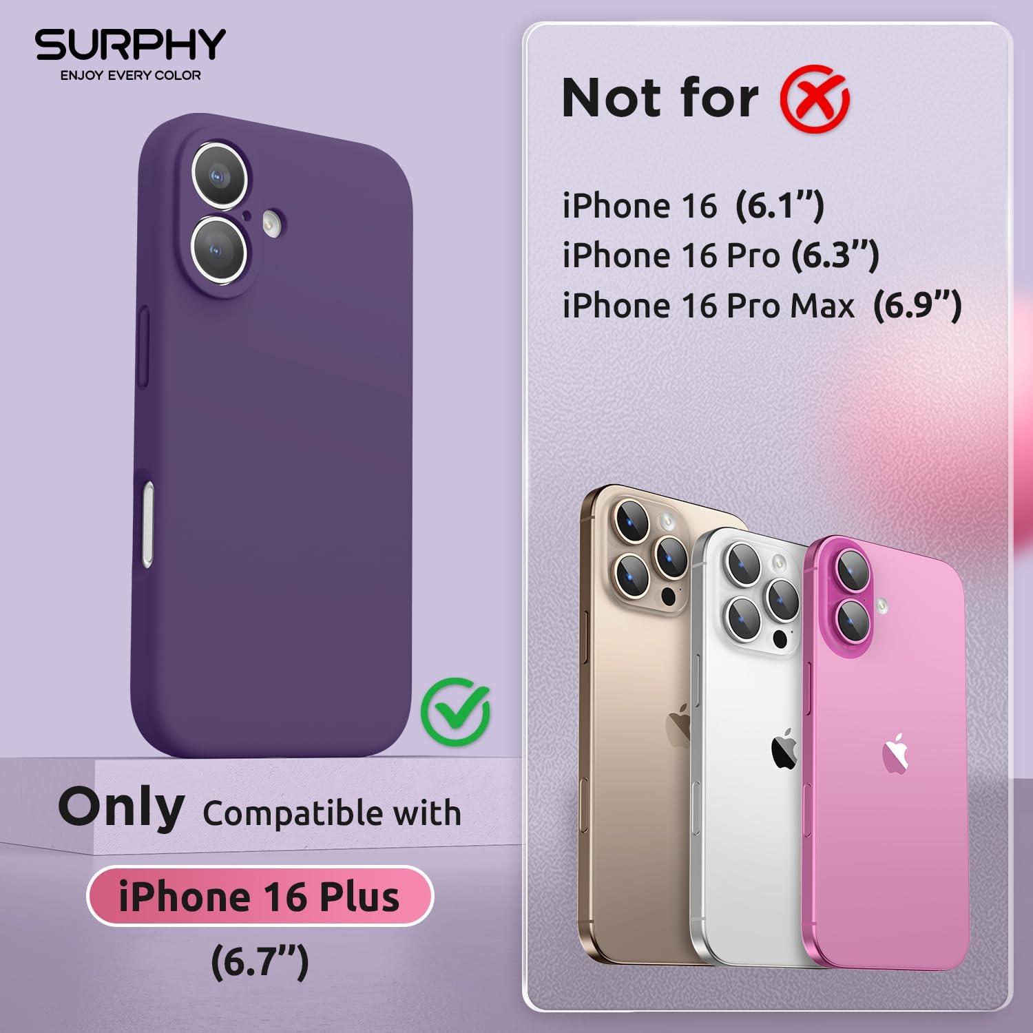 SURPHY Designed for iPhone 16 Plus Case Compatible with MagSafe (6.7 inch 2024), with Screen Protector Liquid Silicone Phone Case (Camera Protective, Soft Microfiber Lining), Soft Mint(Plum)