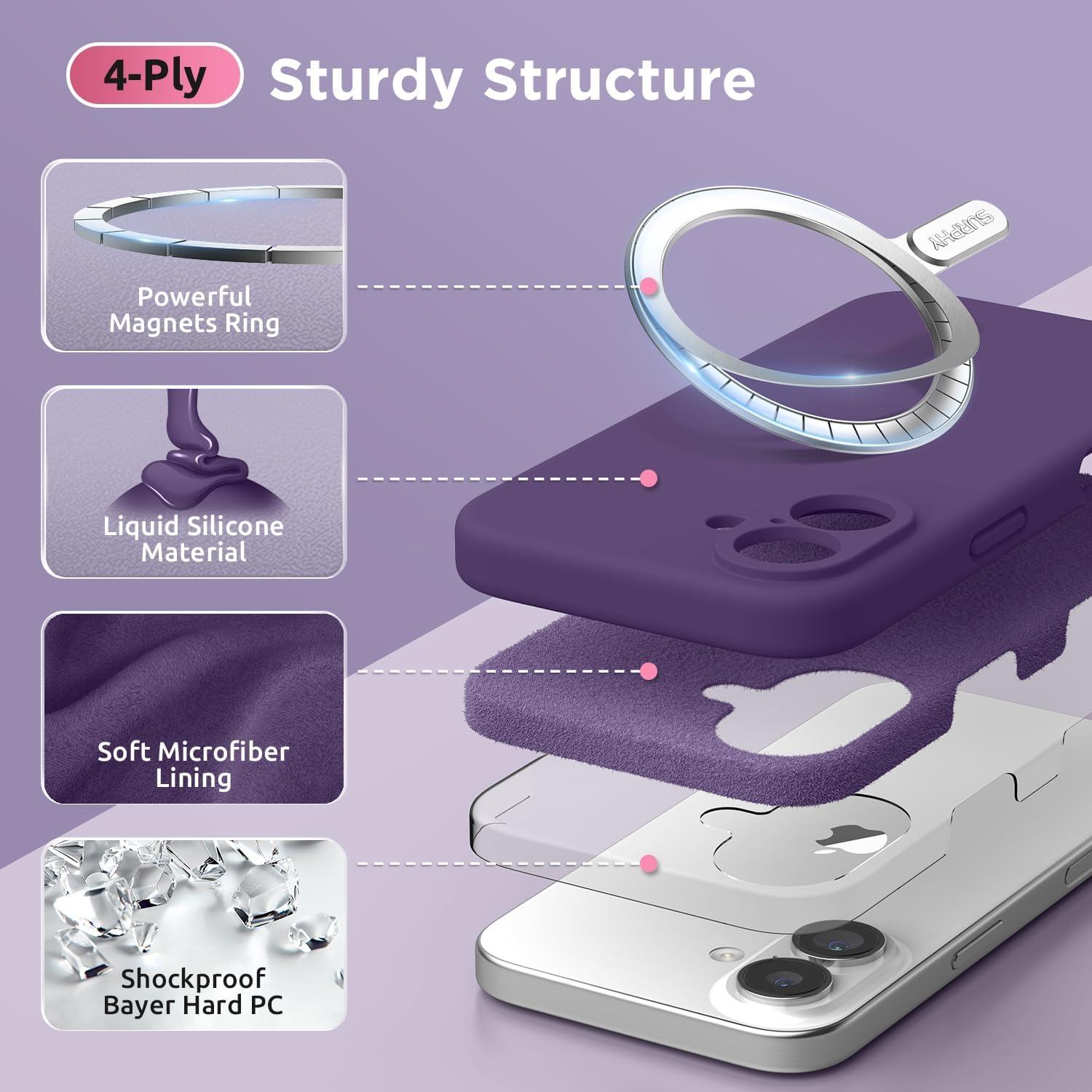 SURPHY Designed for iPhone 16 Plus Case Compatible with MagSafe (6.7 inch 2024), with Screen Protector Liquid Silicone Phone Case (Camera Protective, Soft Microfiber Lining), Soft Mint(Lilac Purple)