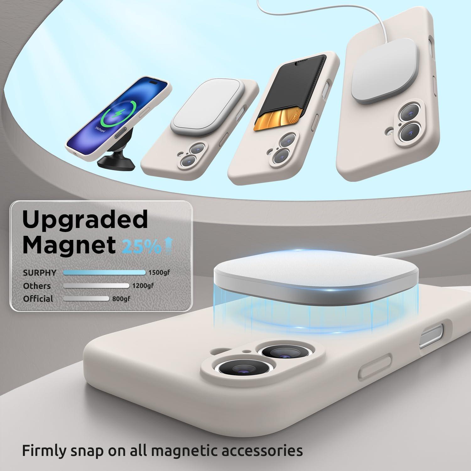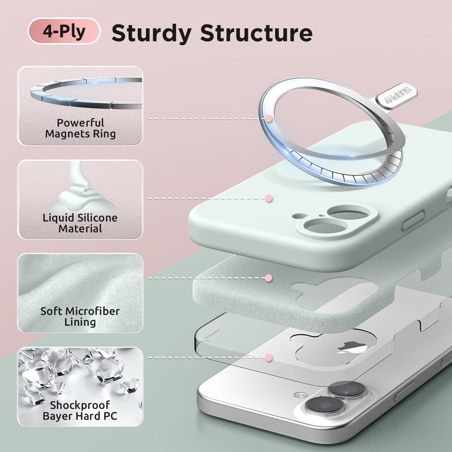 SURPHY Designed for iPhone 16 Plus Case Compatible with MagSafe (6.7 inch 2024), with Screen Protector Liquid Silicone Phone Case (Camera Protective, Soft Microfiber Lining), Soft Mint(Stone)