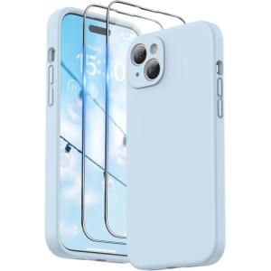 SURPHY Case for iPhone 13 Pro Case with Screen Protector, 13 Pro Liquid Silicone Phone Cases (Camera Protection & Soft Microfiber Lining), Black(Cloud Blue)
