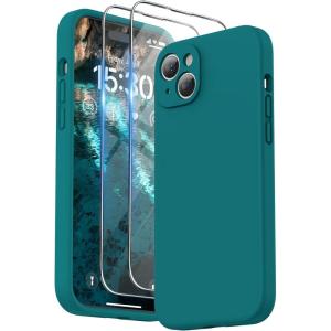 SURPHY Compatible with iPhone 13 Case with Screen Protector, (Camera Protection & Soft Microfiber Lining) Liquid Silicone Phone Case 6.1 inch 2021, Cactus Green(Blue Jay)