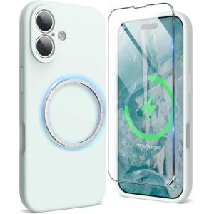 SURPHY Designed for iPhone 16 Plus Case Compatible with MagSafe (6.7 inch 2024), with Screen Protector Liquid Silicone Phone Case (Camera Protective, Soft Microfiber Lining), Soft Mint(Blue Jay)