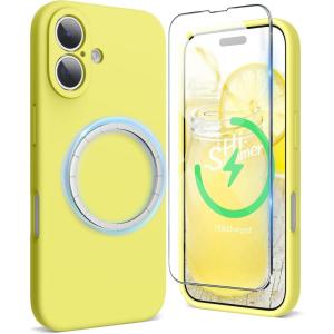 SURPHY Designed for iPhone 16 Plus Case Compatible with MagSafe (6.7 inch 2024), with Screen Protector Liquid Silicone Phone Case (Camera Protective, Soft Microfiber Lining), Soft Mint(Yellow)
