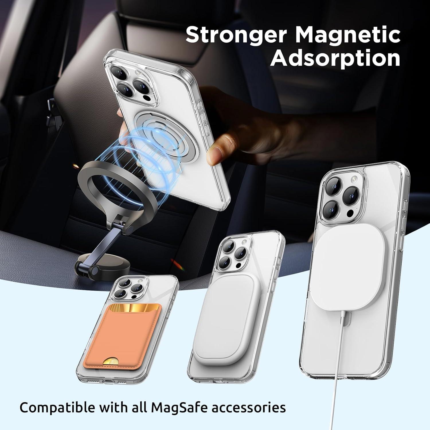 SURPHY 360° Magnetic Stand for iPhone 16 Pro Case with Finger Ring, Compatible with MagSafe, Ring Stand and Finger Ring Phone Case for 16 Pro 6.3 inch 2024, Clear(Clear)
