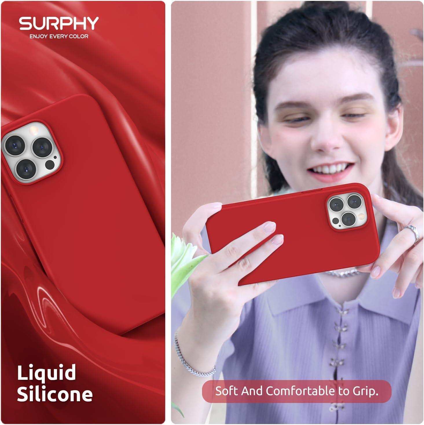 SURPHY (4 in 1 Designed for iPhone 14 Pro Case Compatible with MagSafe (6.1 inch, 2022), with 2 Pack Screen Protector + Camera Cover, Liquid Silicone Phone Case (Cactus Green)(Red)