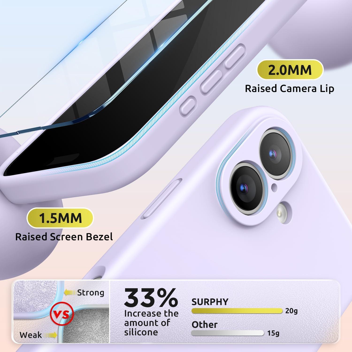 SURPHY Case for iPhone 17 Case with Screen Protector (6.3 inch 2025), Compatible with MagSafe, Liquid Silicone 17 Phone Cases Whit Soft Microfiber Lining, Lilac Purple(Lilac)