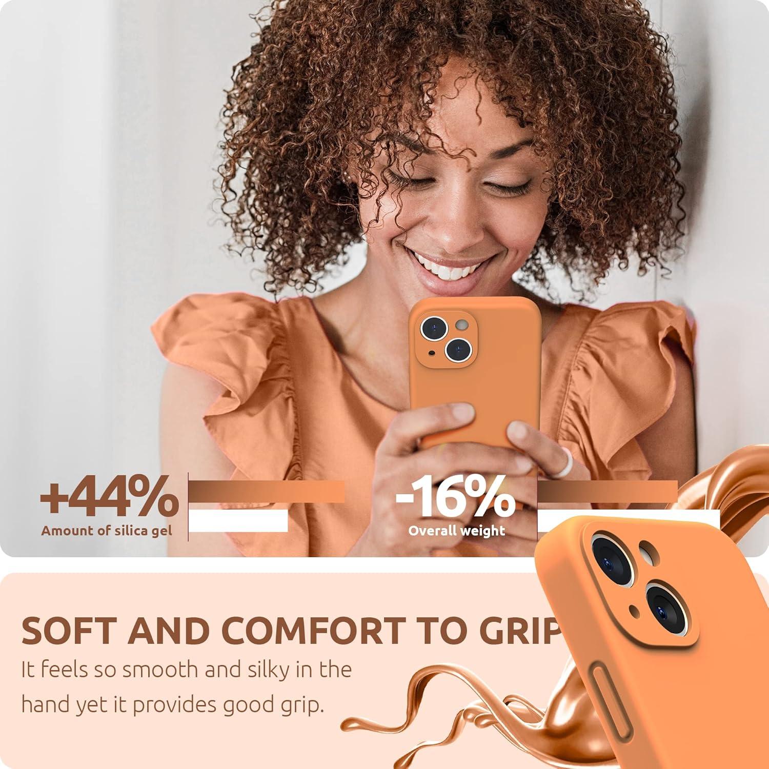 SURPHY Compatible with iPhone 13 Mini Case with Screen Protector, (Camera Protection & Soft Microfiber Lining) Liquid Silicone Phone Case 5.4 inch 2021, Clover Green(Marigold Orange)