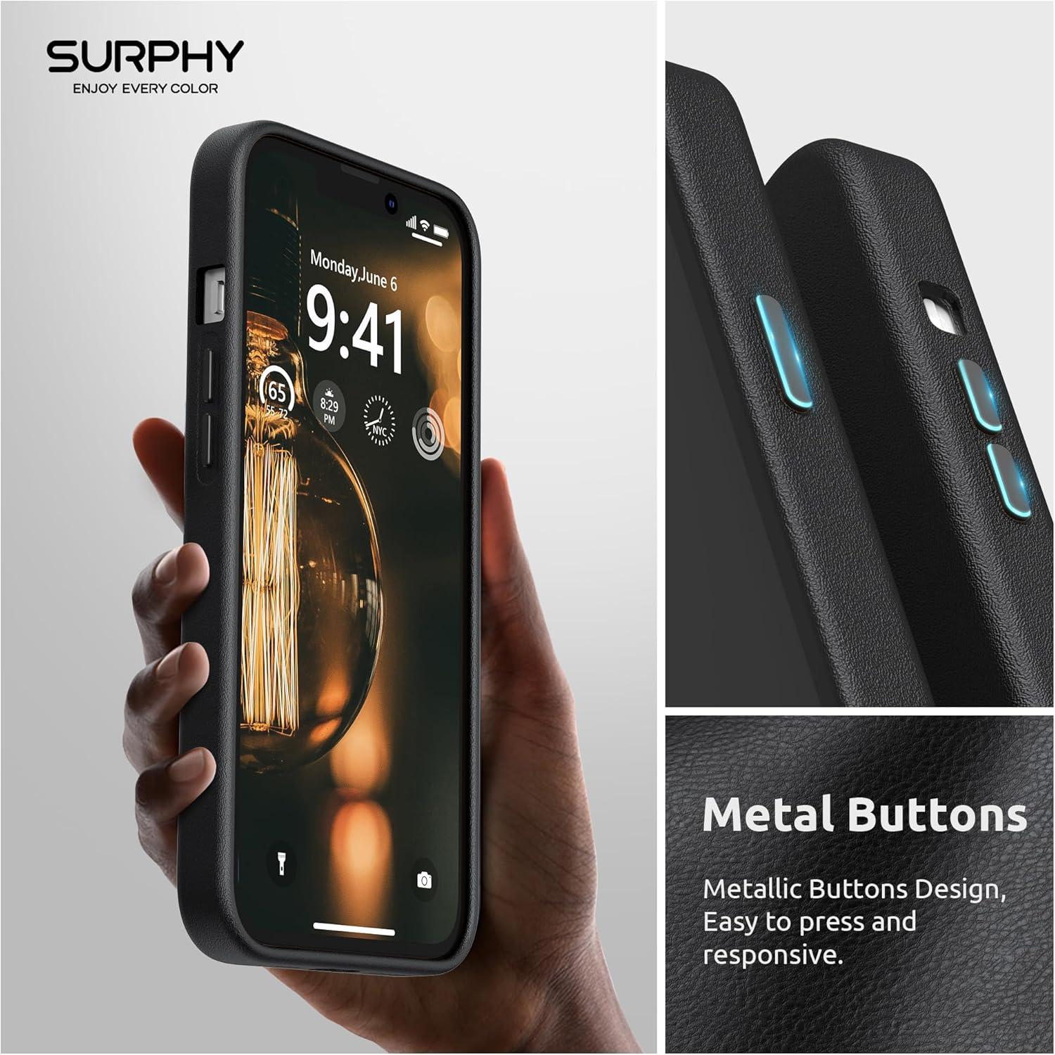 【Metallic Buttons Design】SURPHY designed for iPhone 13 Pro Max leather case with metallic buttons for a luxurious style, easy to press to all buttons with responsive button cover.