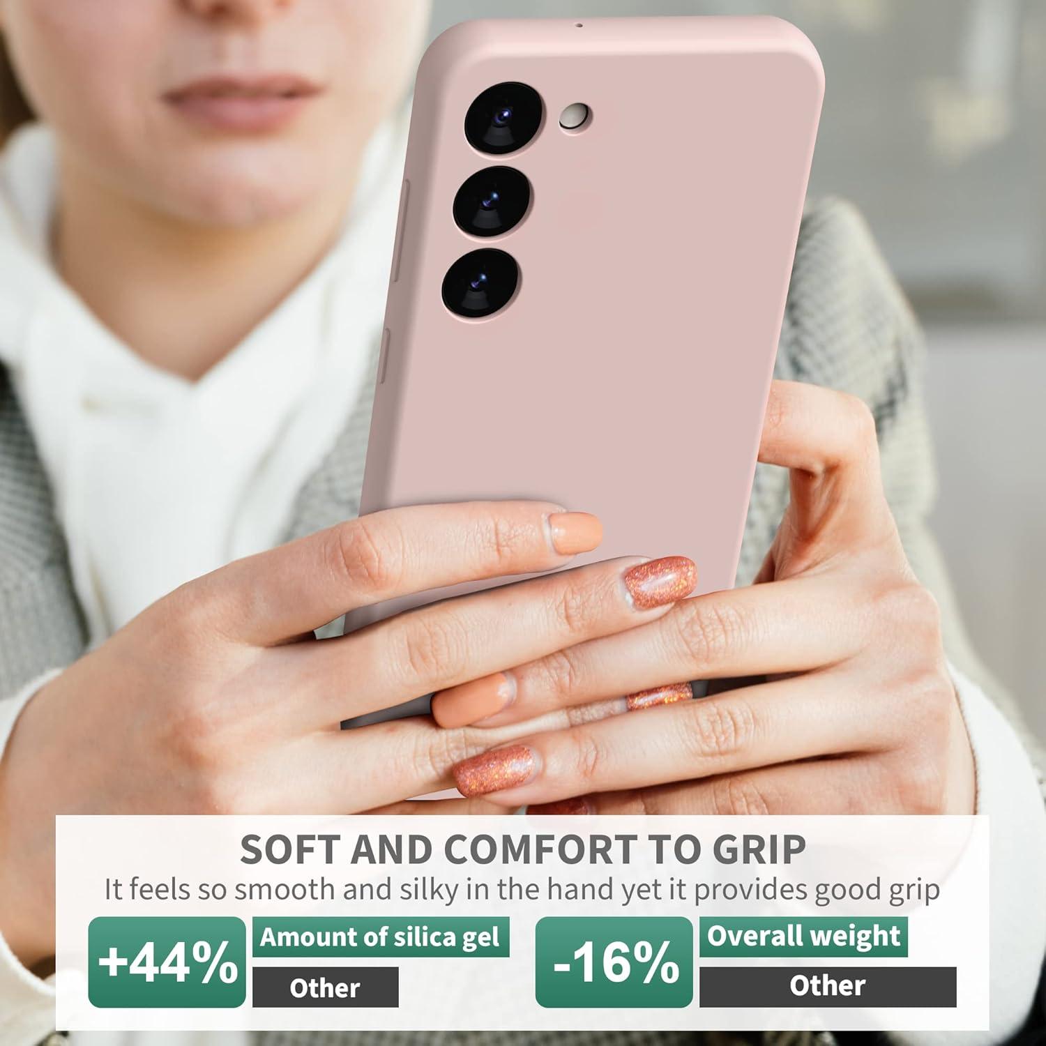 【Liquid Silicone Case for Galaxy S23 Plus】Made of premium liquid silicone with anti-fingerprints, smoother touch and comfortable grip but Non-Slip Grip. With soft and anti-skid Microfiber Lining on the interior protect your phone from abrasion.