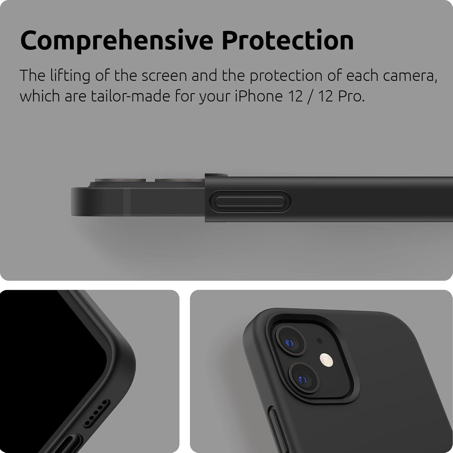 SURPHY Designed for iPhone 12 Case and iPhone 12 Pro Case 6.1 inch, Thickened Liquid Silicone Phone Case (with Microfiber Lining) for iPhone 12 & 12 Pro 2020, Red(Black)