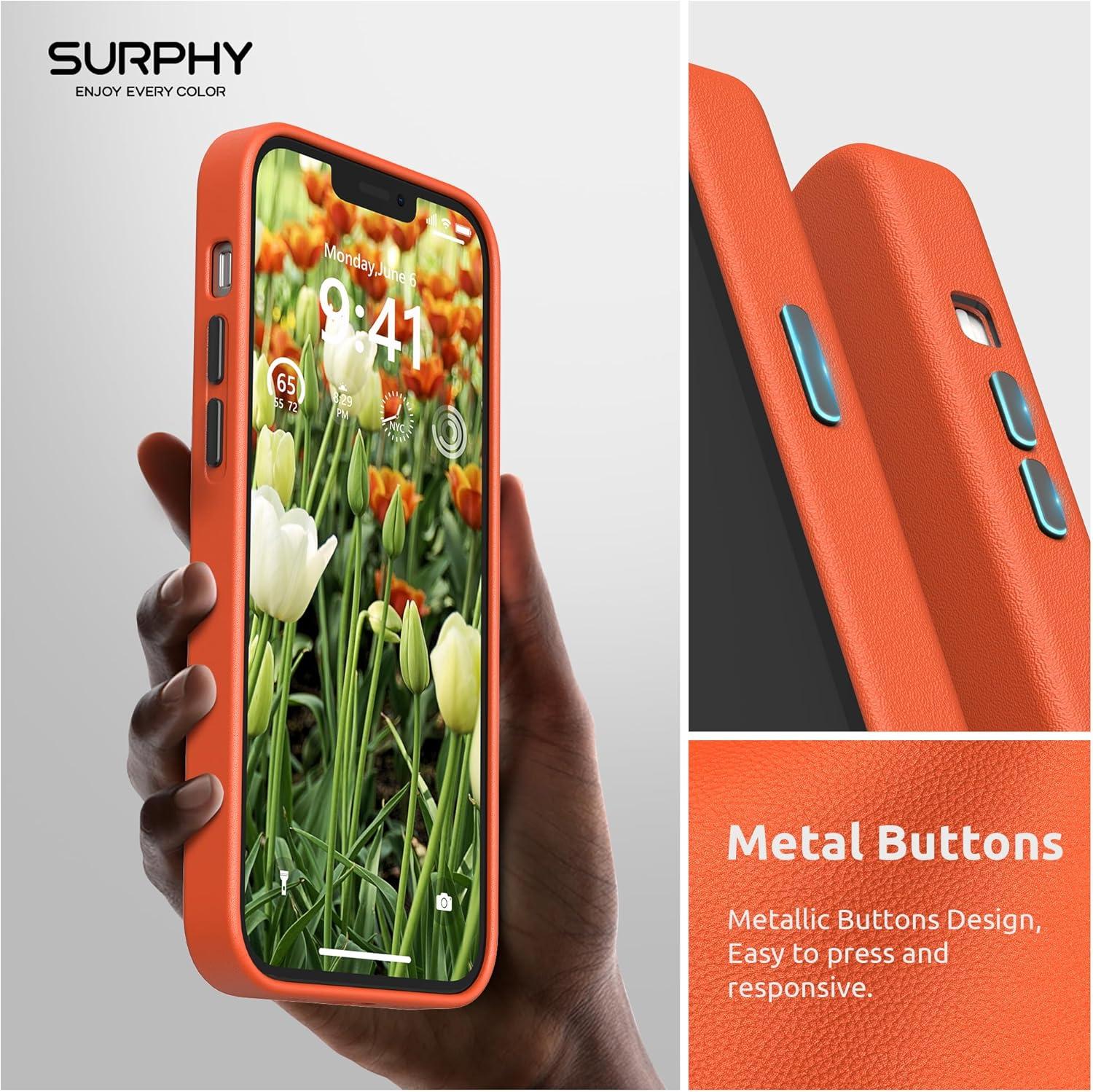 【Metallic Buttons Design】SURPHY designed for iPhone 12 leather case & iPhone 12 Pro leather case with metallic buttons for a luxurious style, easy to press to all buttons with responsive button cover.