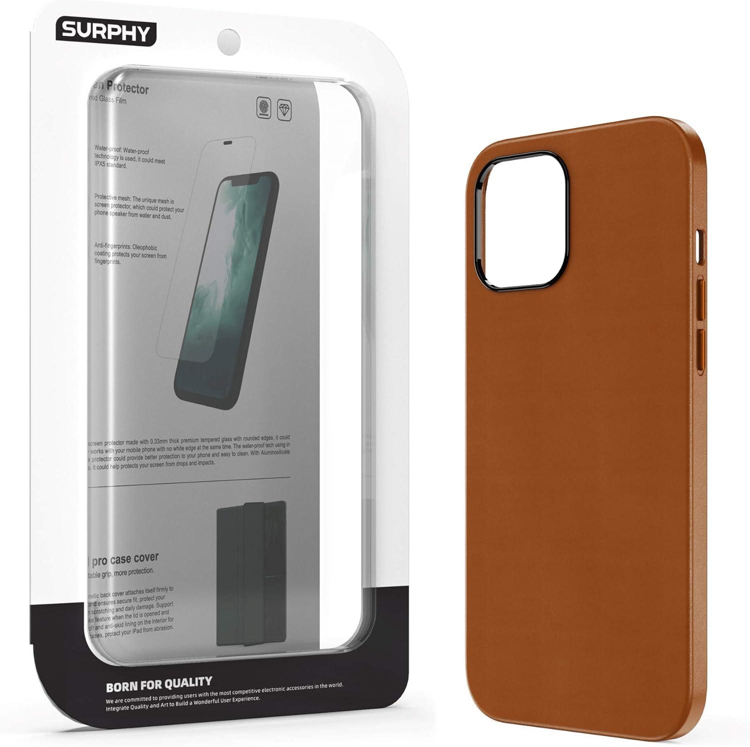 SURPHY Designed for iPhone 12 Pro Max Case 6.7 inch, Premium Faux Leather Phone Case (with Metallic Buttons & Microfiber Lining) Compatible with iPhone 12 Pro Max, Brown(Brown)