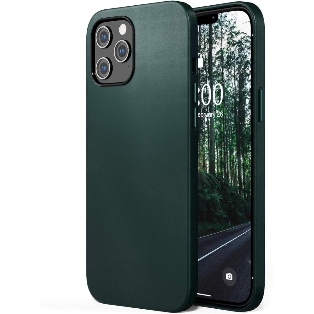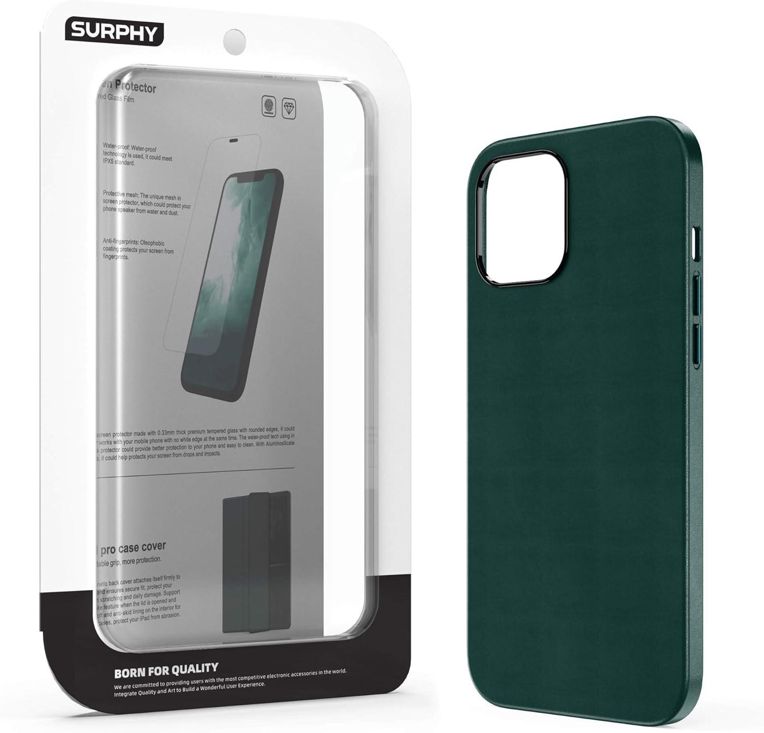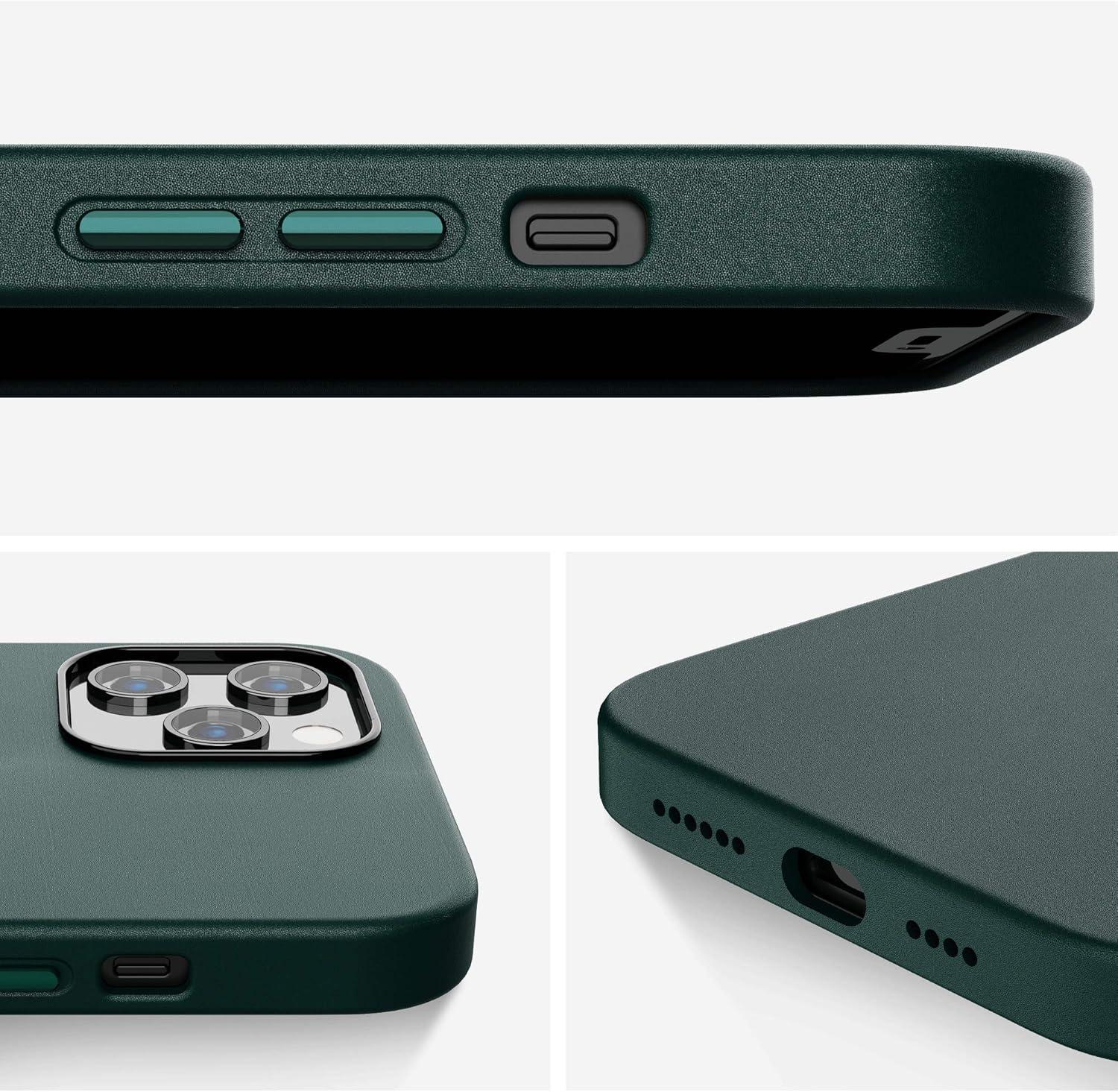 SURPHY Designed for iPhone 12 Pro Max Case 6.7 inch, Premium Faux Leather Phone Case (with Metallic Buttons & Microfiber Lining) Compatible with iPhone 12 Pro Max, Brown(Forest Green)