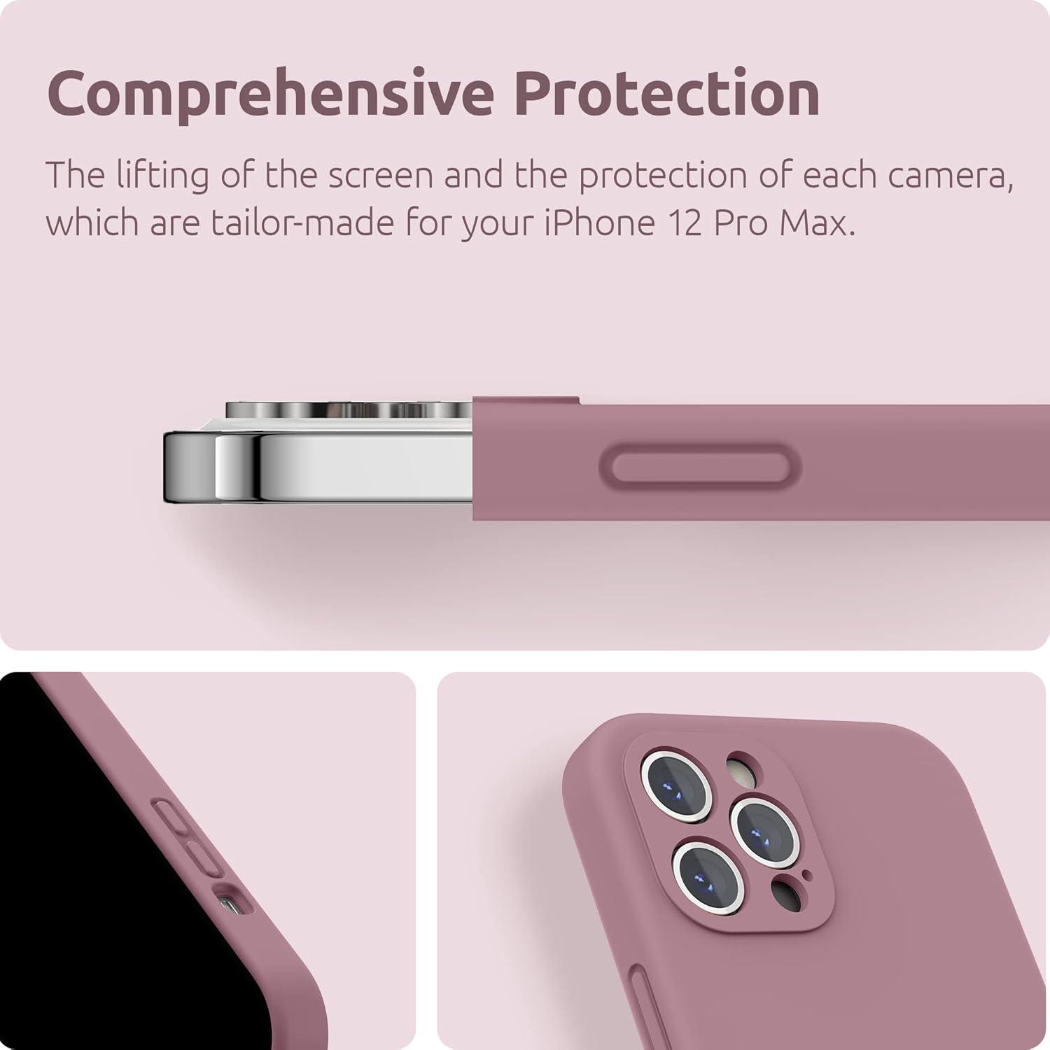 SURPHY Designed for iPhone 12 Pro Max Case with Camera Protection, Liquid Silicone Phone Case with Microfiber Lining, Cactus Green(Lilac Purple)