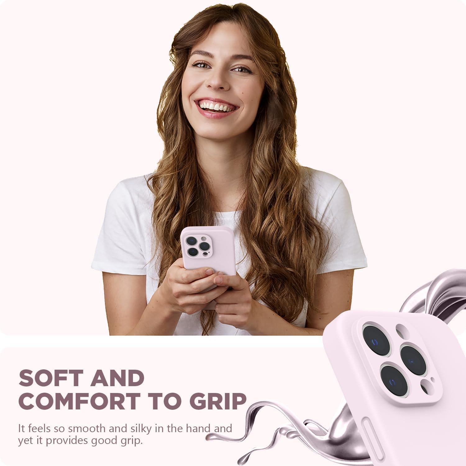 Liquid Silicone Case for iPhone 14 Pro: Made of premium liquid silicone, smooth touch, anti-fingerprints, comfortable to grip; easy to clean, dust can be wiped with a damp cloth