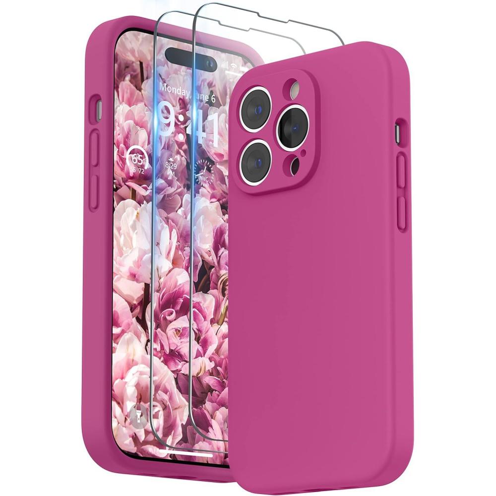 SURPHY Designed for iPhone 14 Pro Case with Screen Protector, (Camera Protection & Soft Microfiber Lining) Liquid Silicone Phone Case, Cloud Blue(Hot Pink)