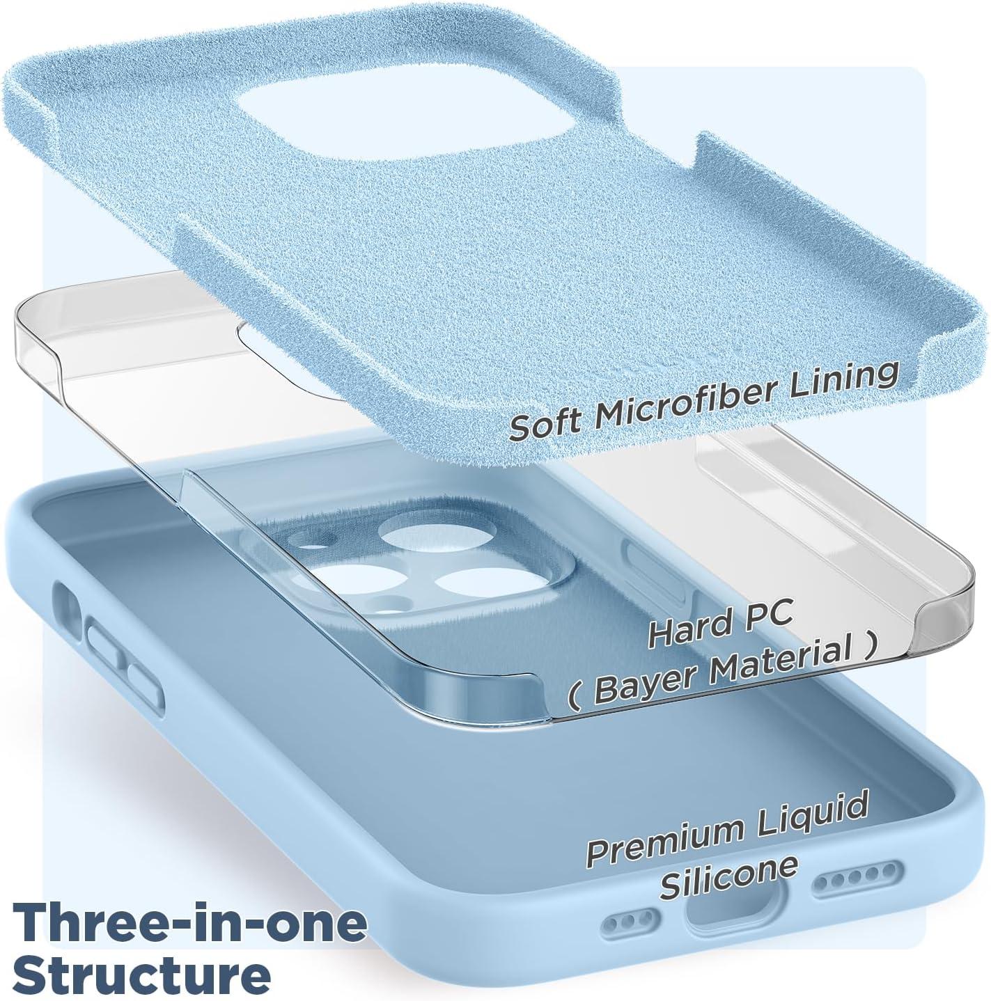 SURPHY Designed for iPhone 14 Pro Case with Screen Protector, (Camera Protection & Soft Microfiber Lining) Liquid Silicone Phone Case, Cloud Blue(Light Blue)