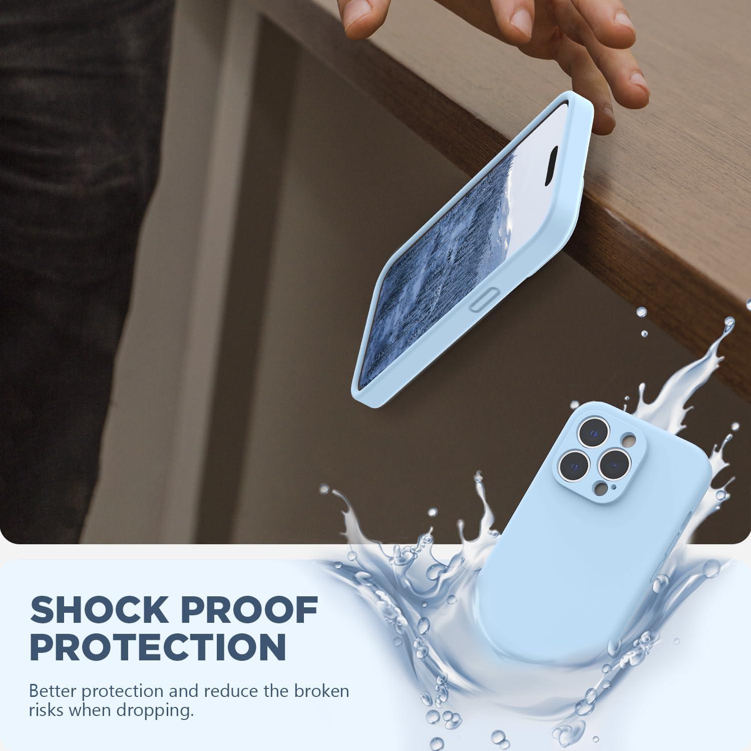 Liquid Silicone Case for iPhone 14 Pro: Made of premium liquid silicone, smooth touch, anti-fingerprints, comfortable to grip; easy to clean, dust can be wiped with a damp cloth