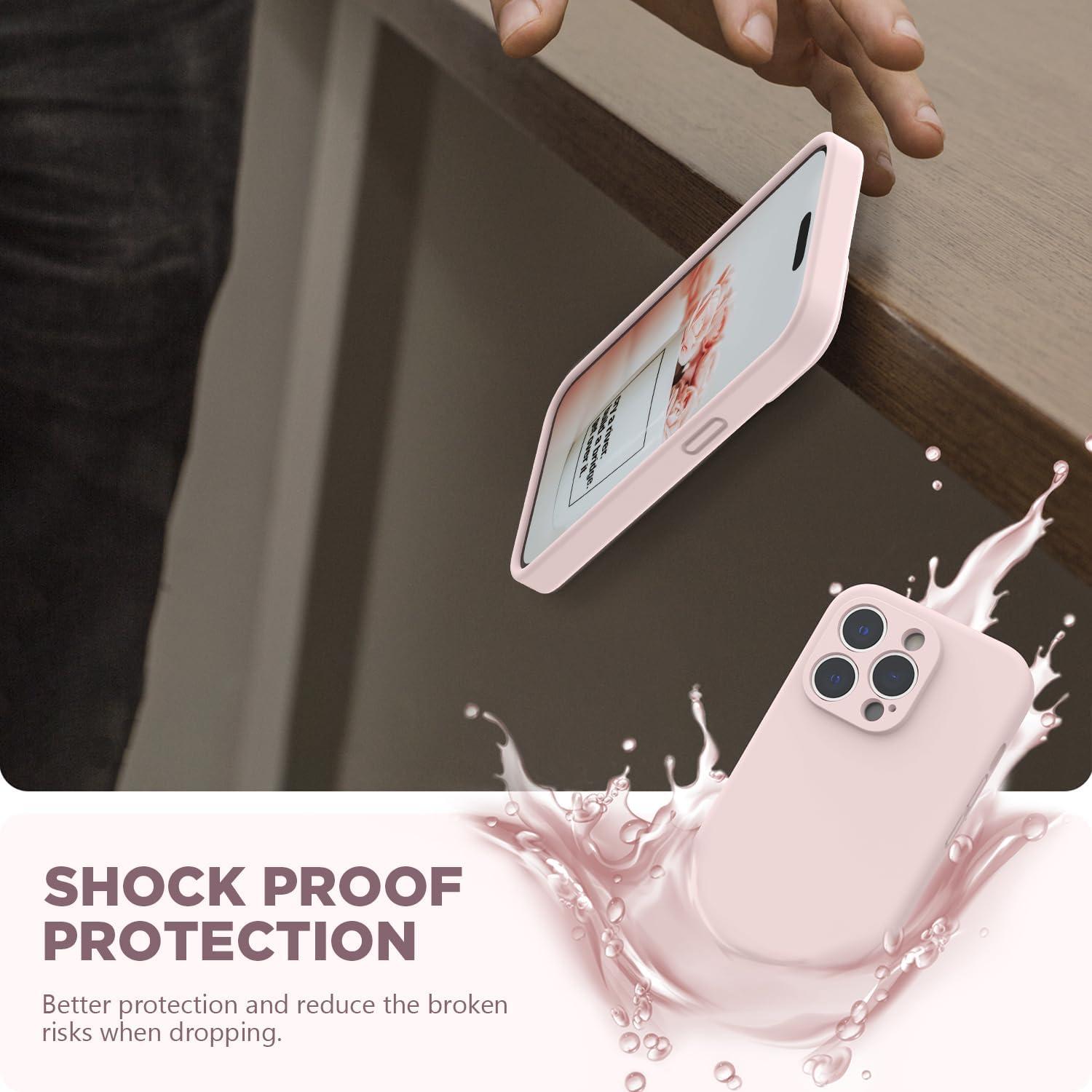 Liquid Silicone Case for iPhone 14 Pro: Made of premium liquid silicone, smooth touch, anti-fingerprints, comfortable to grip; easy to clean, dust can be wiped with a damp cloth
