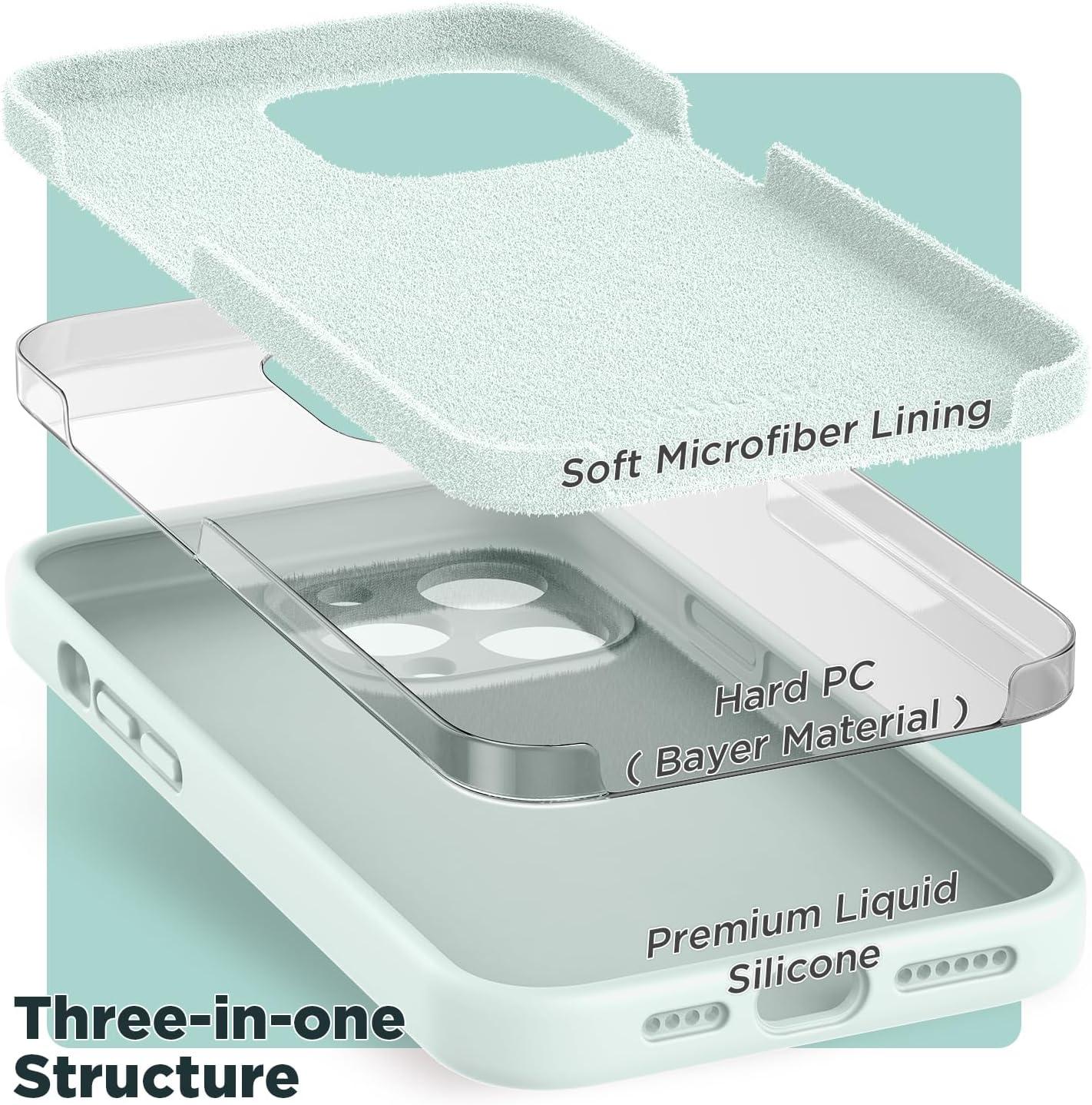 SURPHY Designed for iPhone 14 Pro Max Case with Screen Protector, (with Camera Protection & Soft Microfiber Lining) Liquid Silicone Phone Case, Cactus Green(Soft Mint)