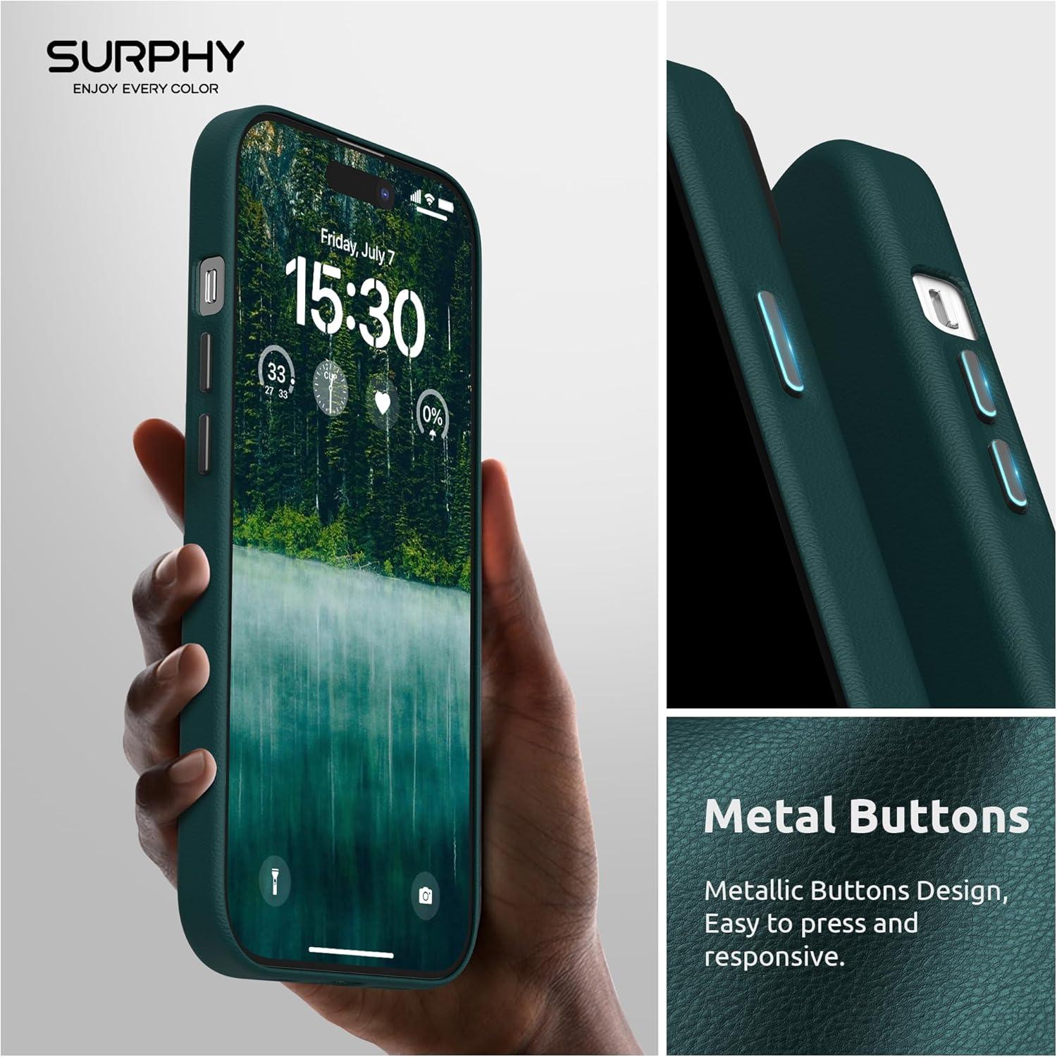 【Metallic Buttons & Soft Microfiber Lining】✅ SURPHY 15 Plus leather cases with metallic buttons for a luxurious style, easy to press to all buttons with responsive button cover. Soft microfiber lining, which can protect your phone from abrasion.