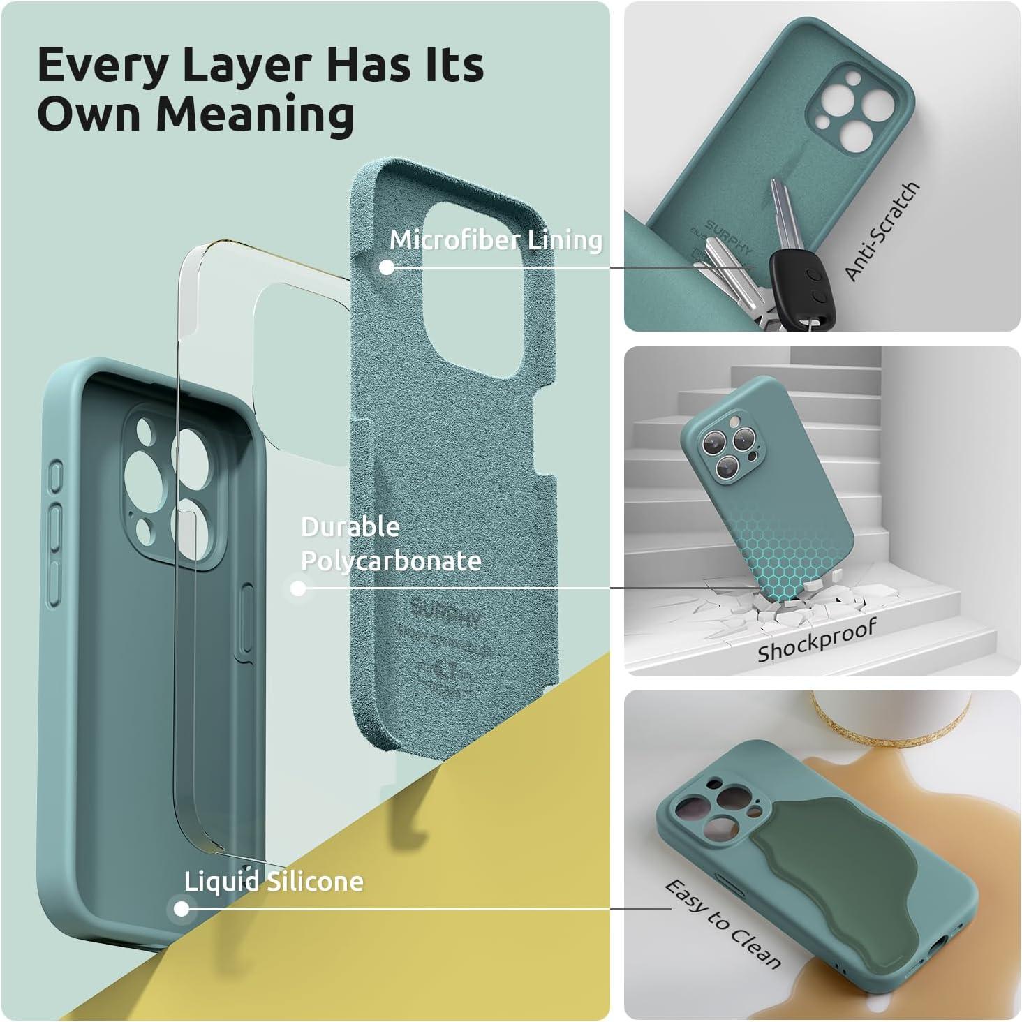 【Liquid Silicone Case for iPhone 15 Pro Max】Made of environmentally friendly liquid silicone with anti-fingerprints, smoother touch, comfortable grip & Non-Slip grip. with soft and anti-skid microfiber lining on the interior protect your phone from abrasion.